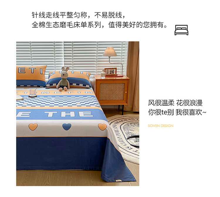 • 91家纺网 家纺一手货源 找家纺 芃成家纺 2023磨毛单床单 字母格