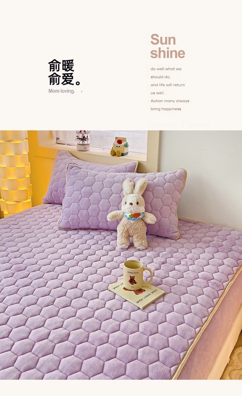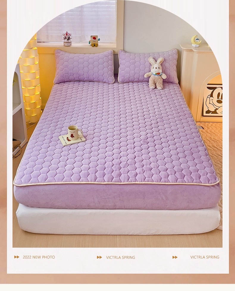 • 91家纺网 家纺一手货源 找家纺 梦舒羽 牛奶绒抗静电夹棉床笠床罩床单床盖床护垫套宿舍三件套 香芋紫