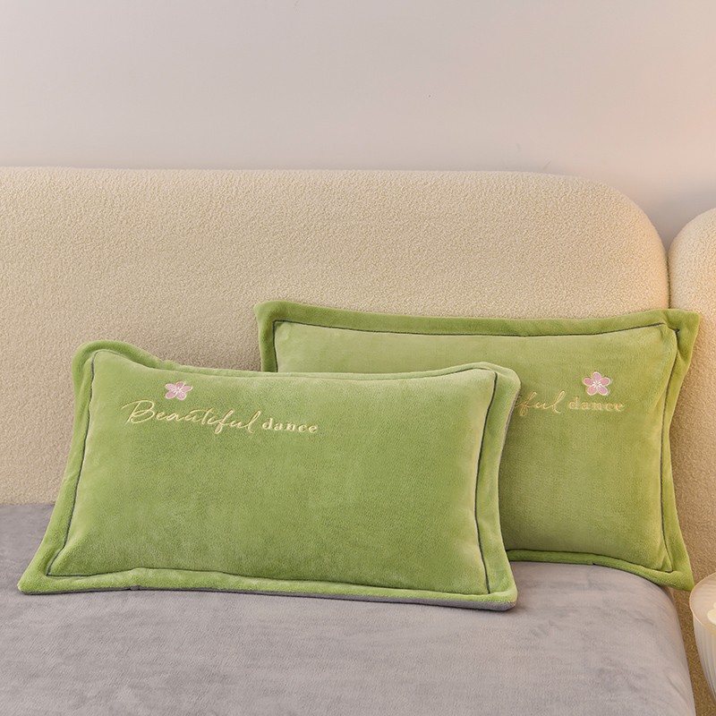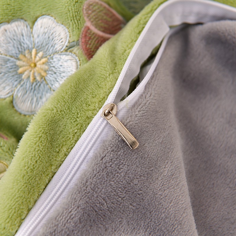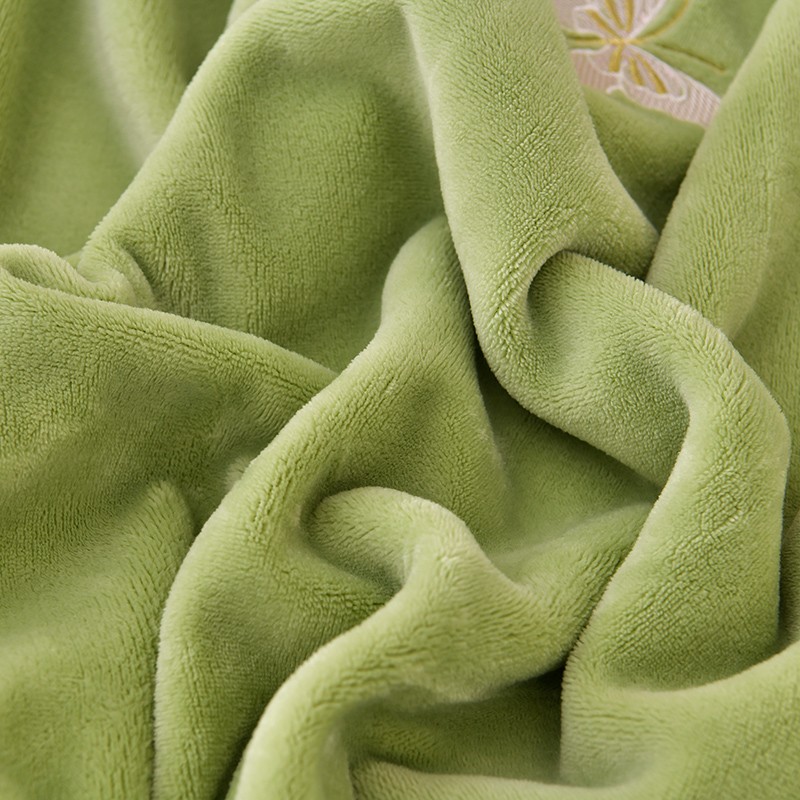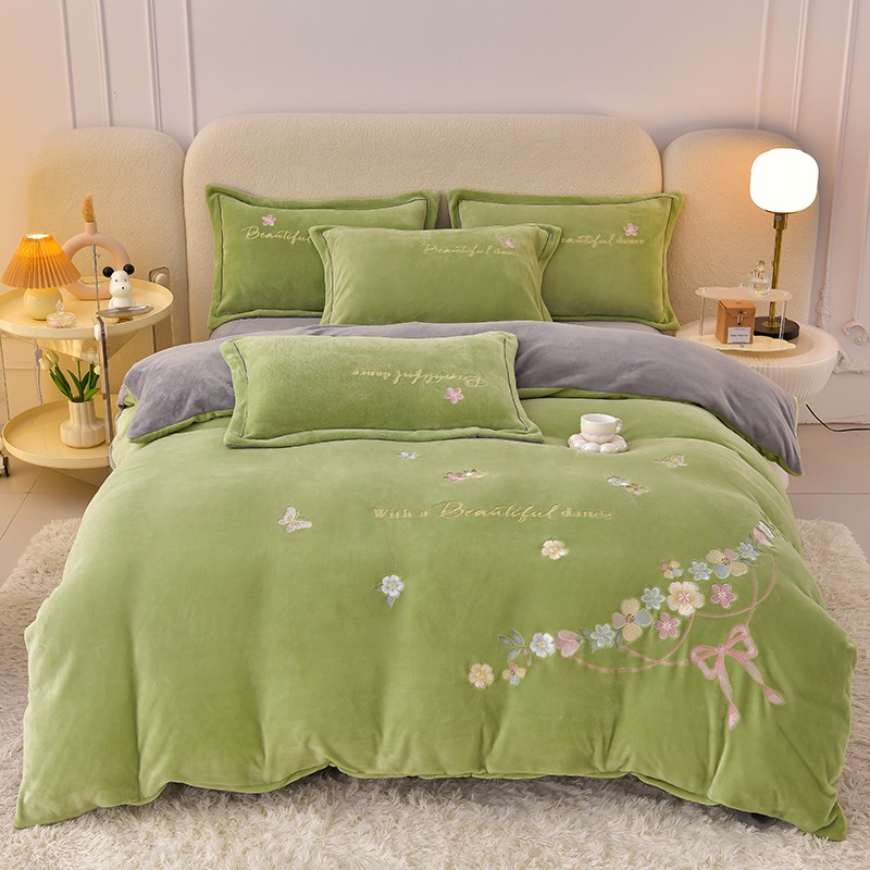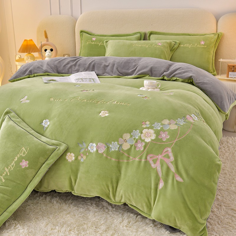畅畅家纺 2023高克重牛奶绒刺绣花四件套金貂法莱宝宝水晶雪花绒四件套 花海-绿+灰