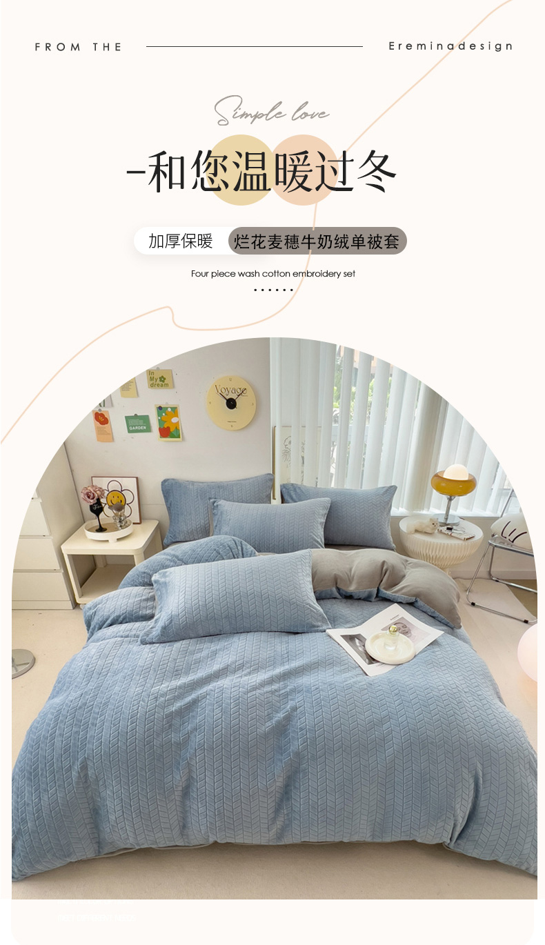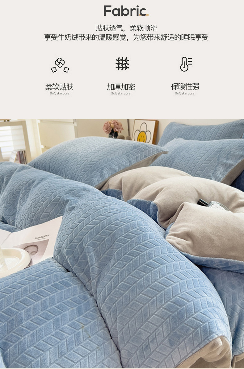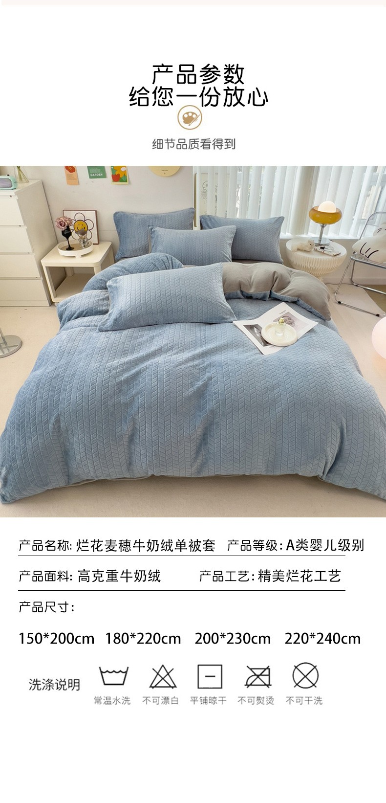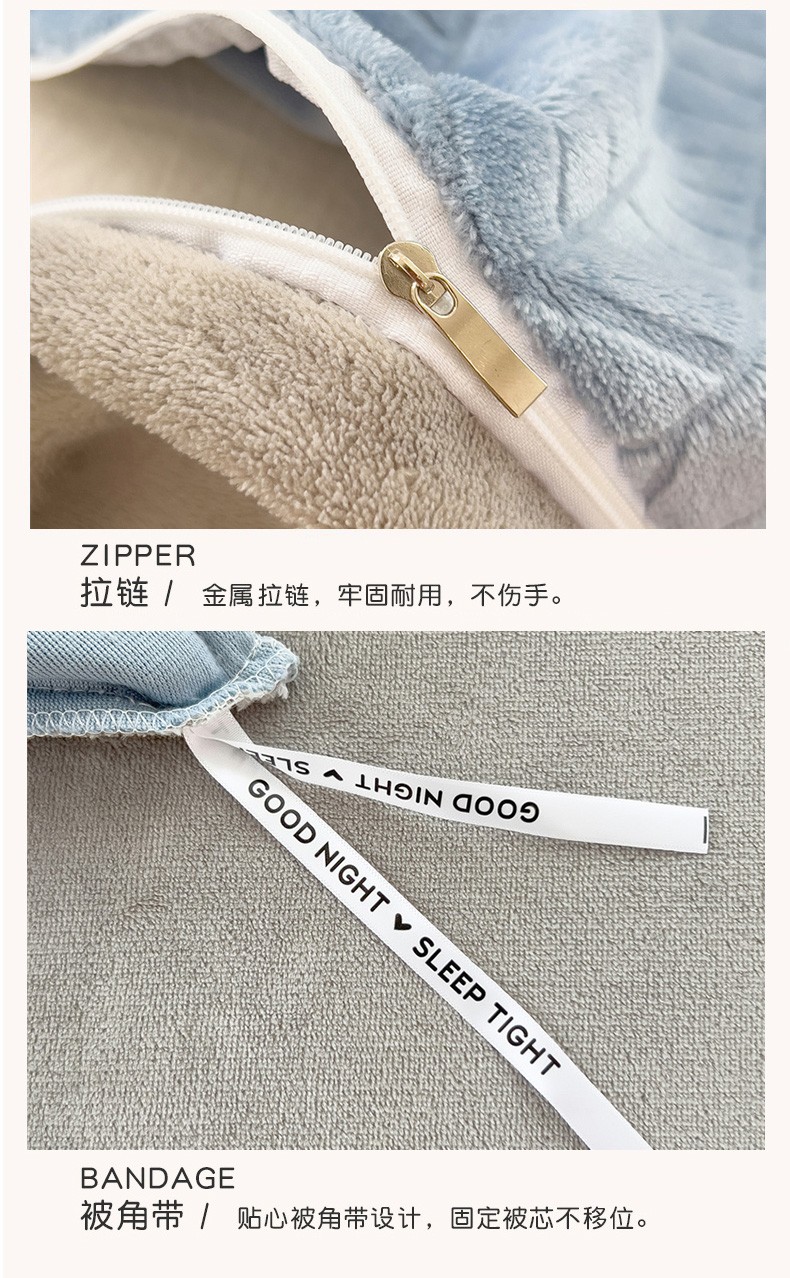 商品名称:全季家居 2023新款小清新A类高克重加厚印花牛奶绒被套单件 浅蓝+浅灰