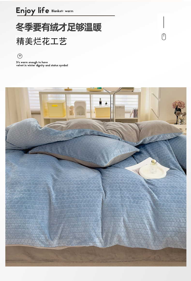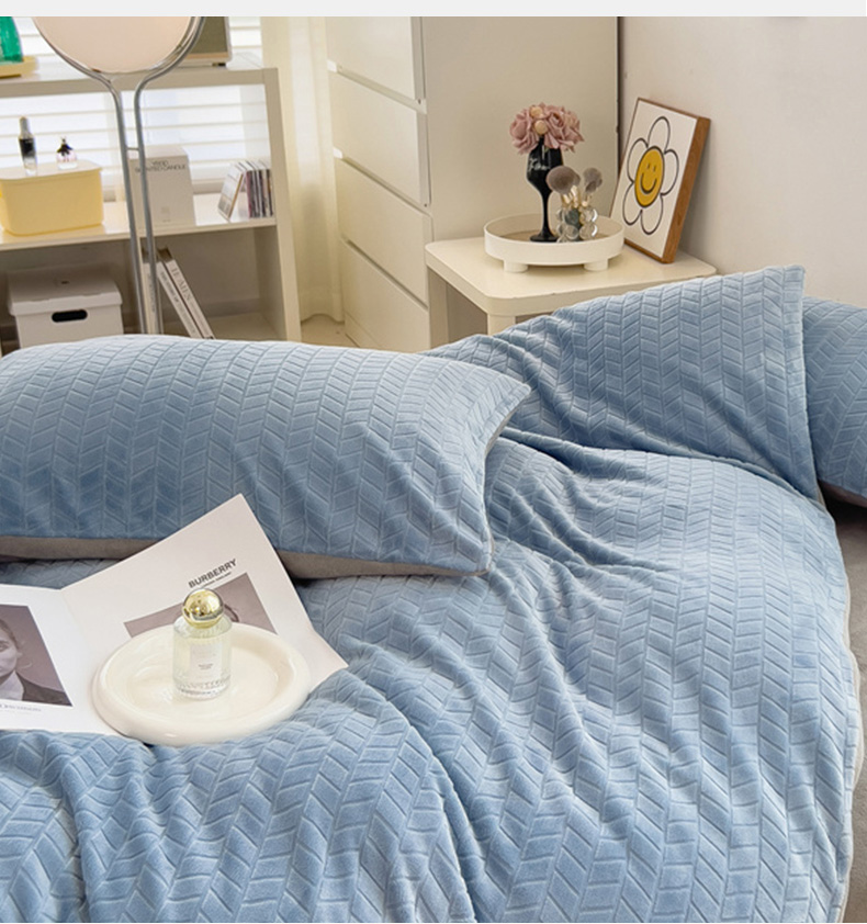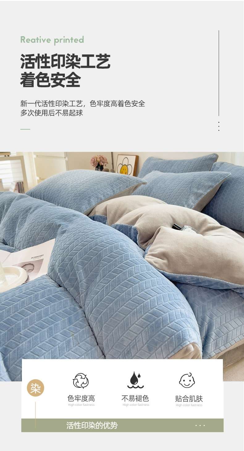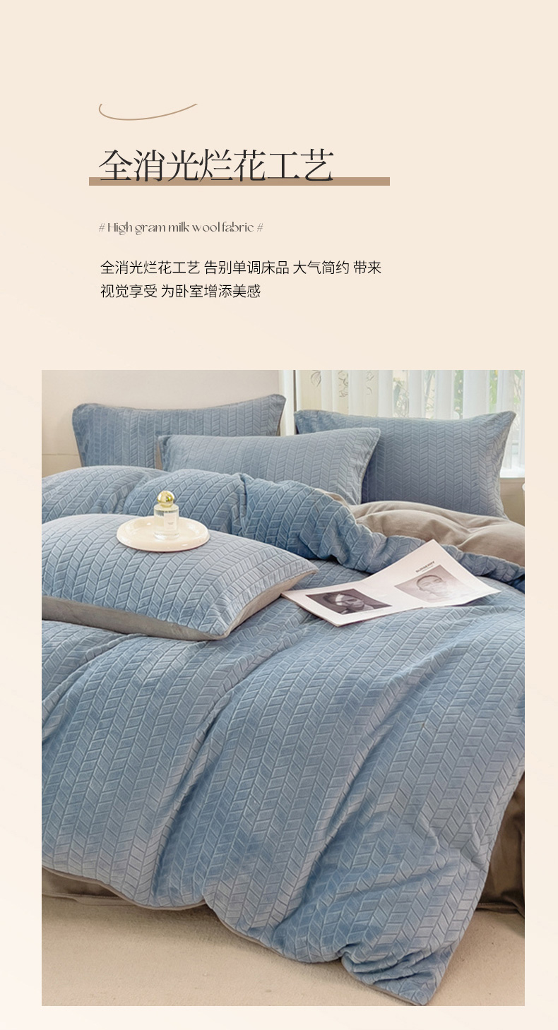 商品名称:全季家居 2023新款小清新A类高克重加厚印花牛奶绒被套单件 浅蓝+浅灰