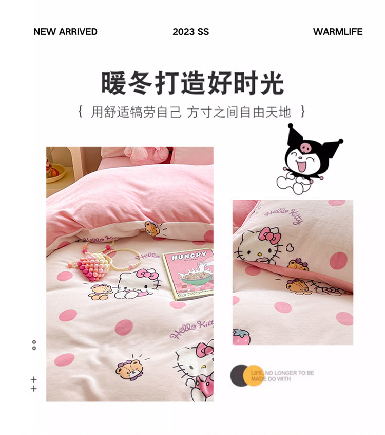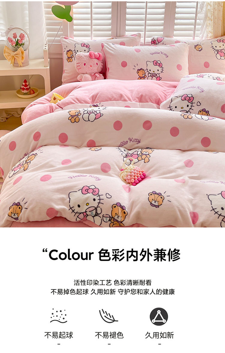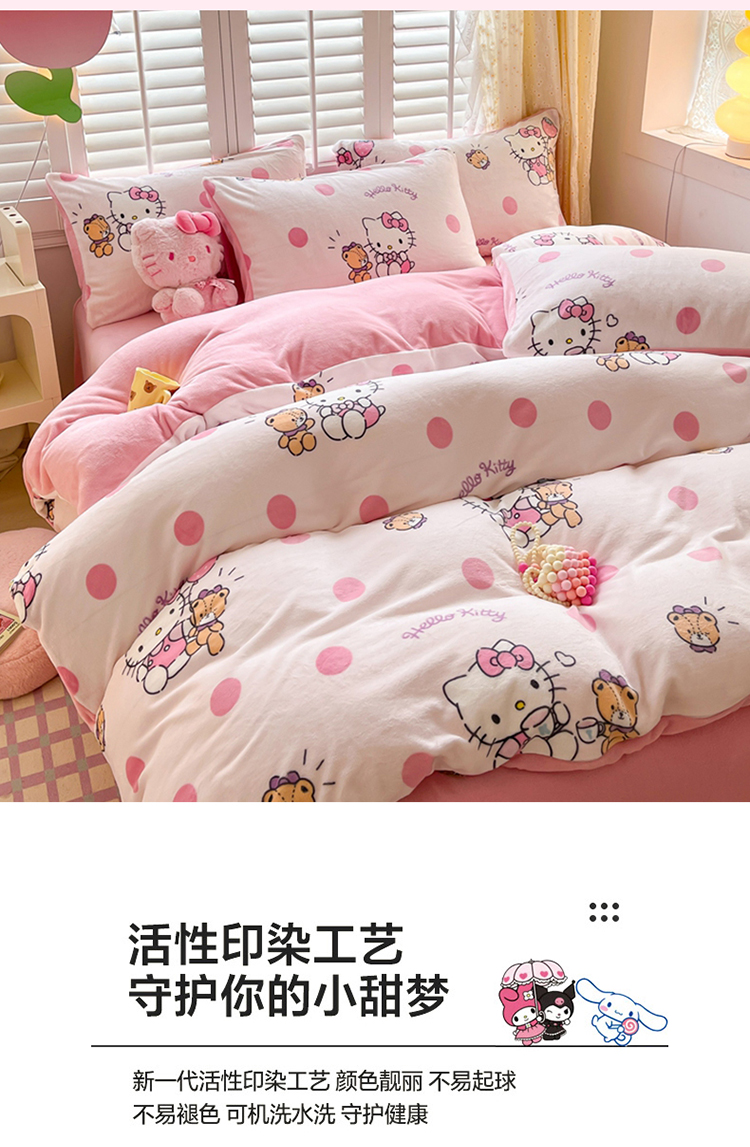 商品名称:星座 2025三丽鸥牛奶绒四件套 泡泡KT猫
