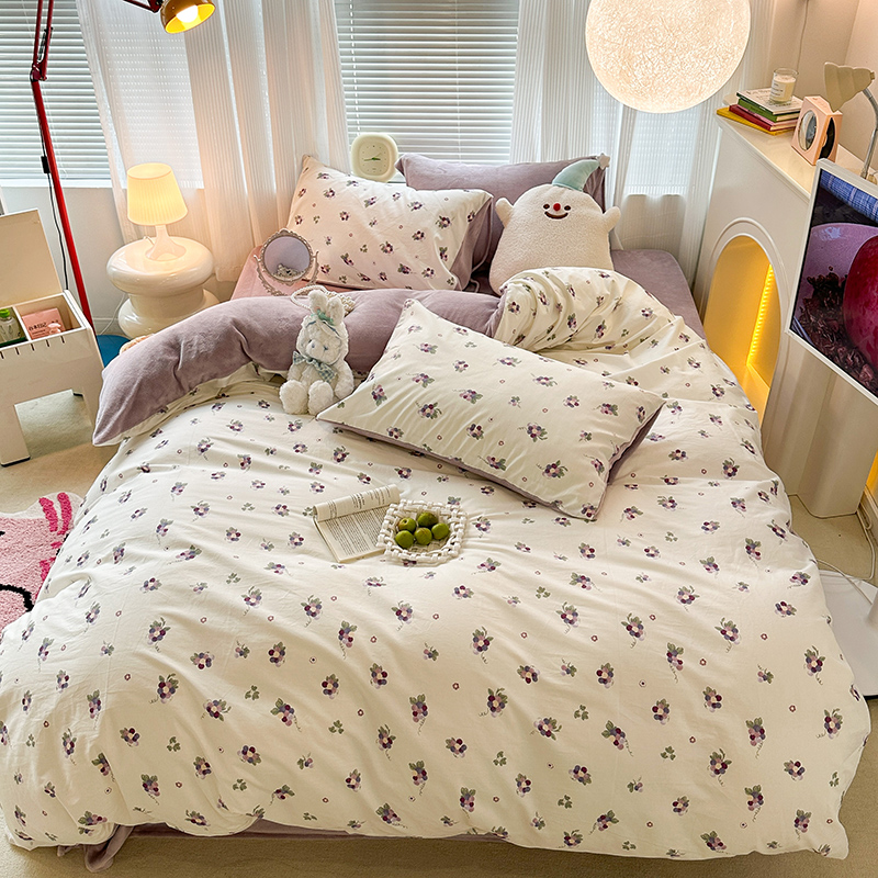 (总)昔可家纺 2023新款全棉小花系列四件套,柏林少女,小小的樱桃,紫色葡萄
