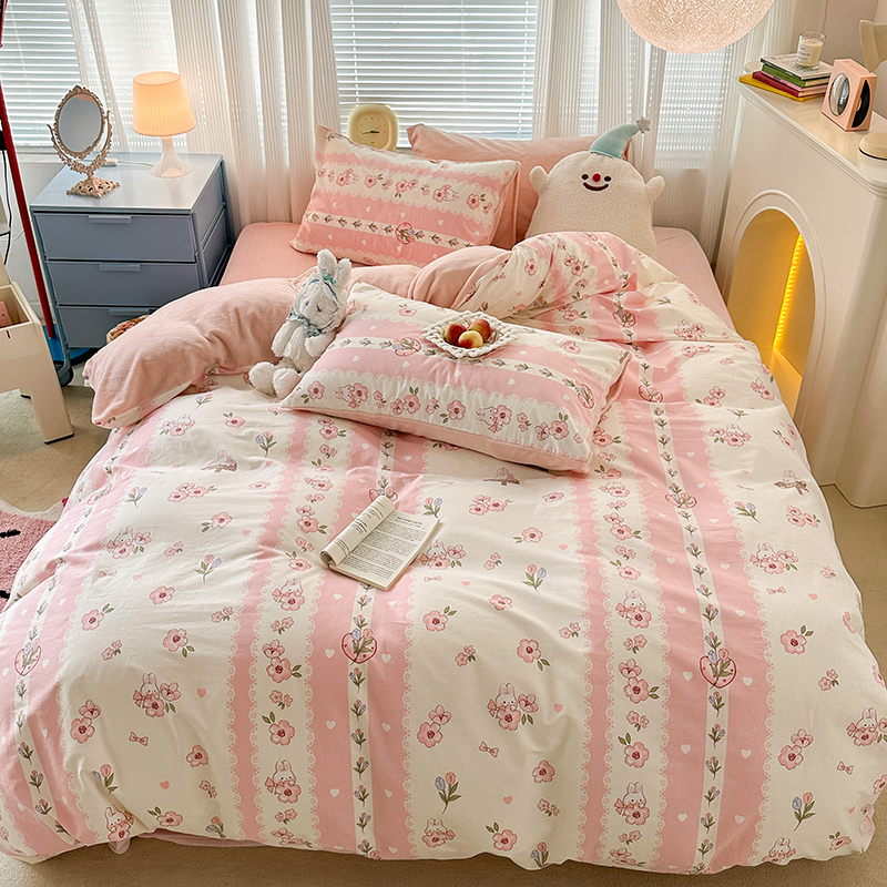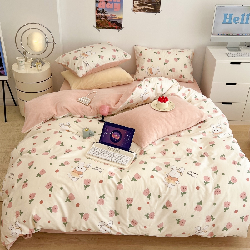 (总)昔可家纺 2024新款印花牛奶绒四件套系列-洛丽塔风,萝莉小兔,小熊烘焙屋,小熊玩偶屋