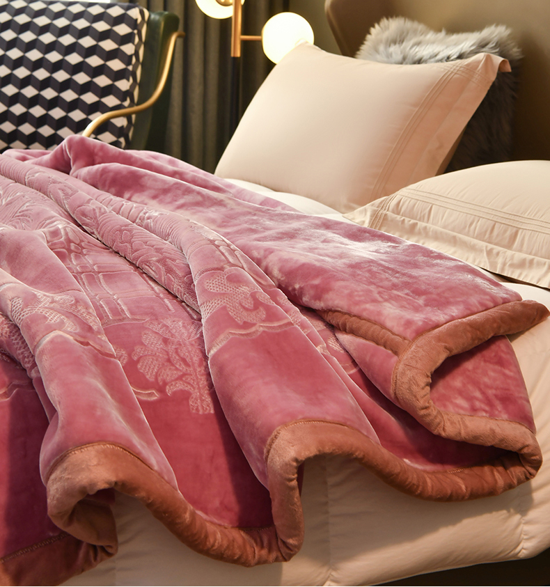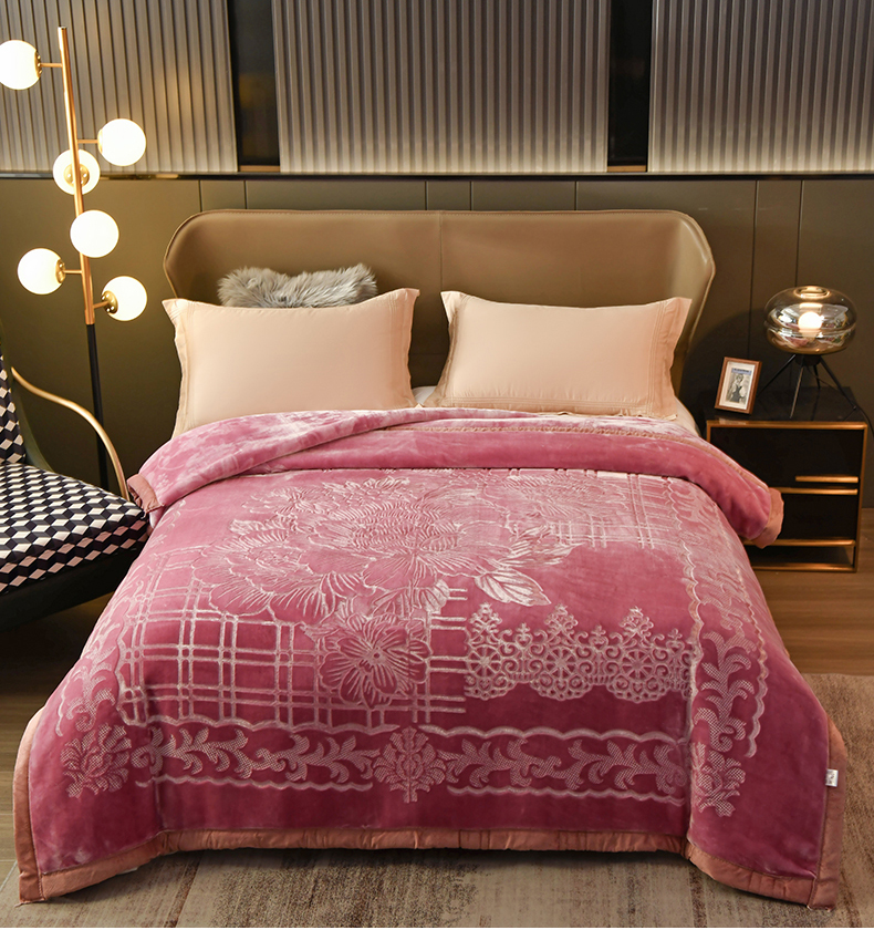 宜派家纺 2023新款双层拉舍尔云毯 出水芙蓉-豆沙