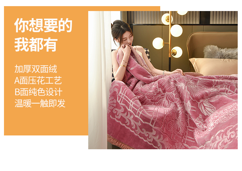 商品名称:宜派家纺 2023新款双层拉舍尔云毯 出水芙蓉-豆沙