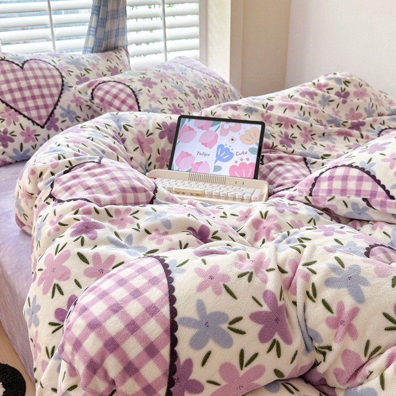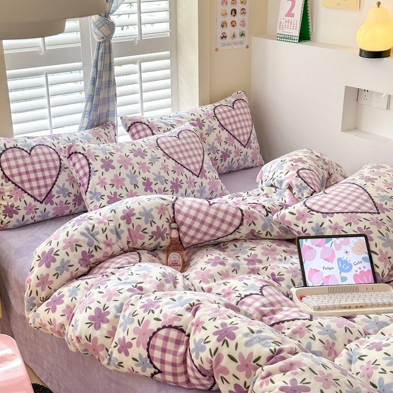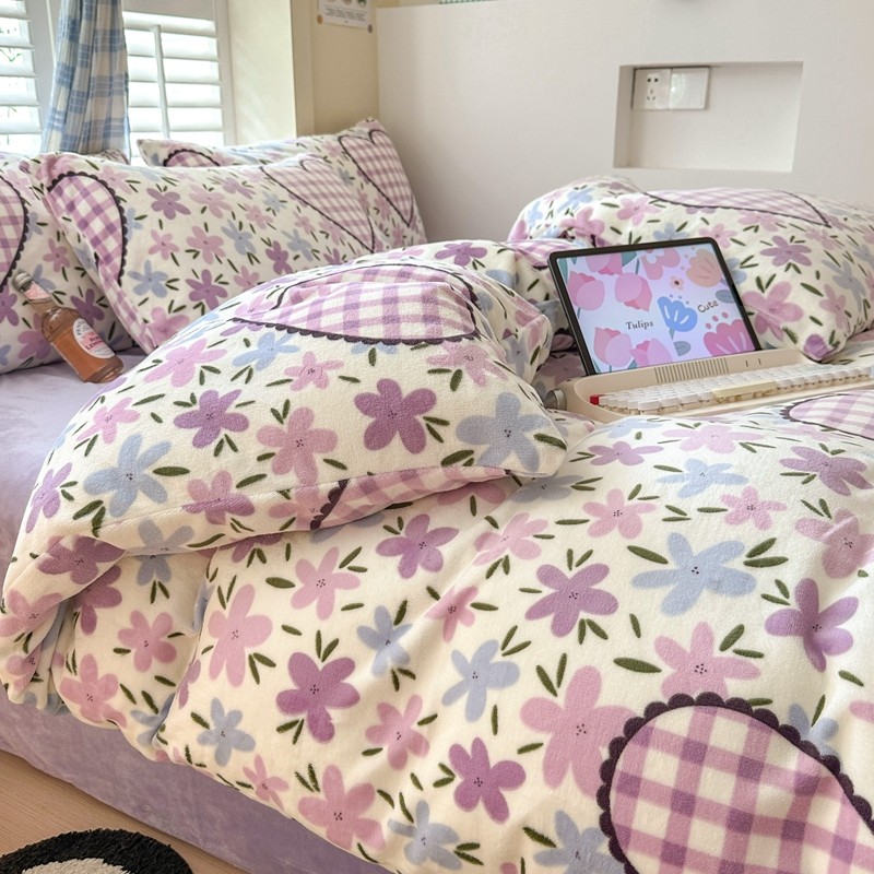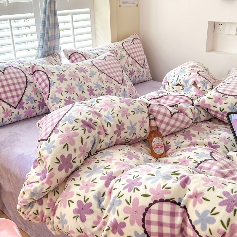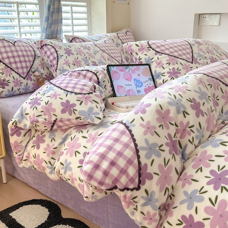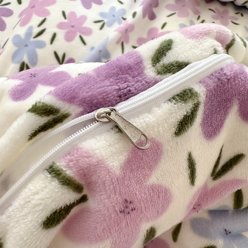 2023秋冬新款220克高克重牛奶绒印花四件套 紫花