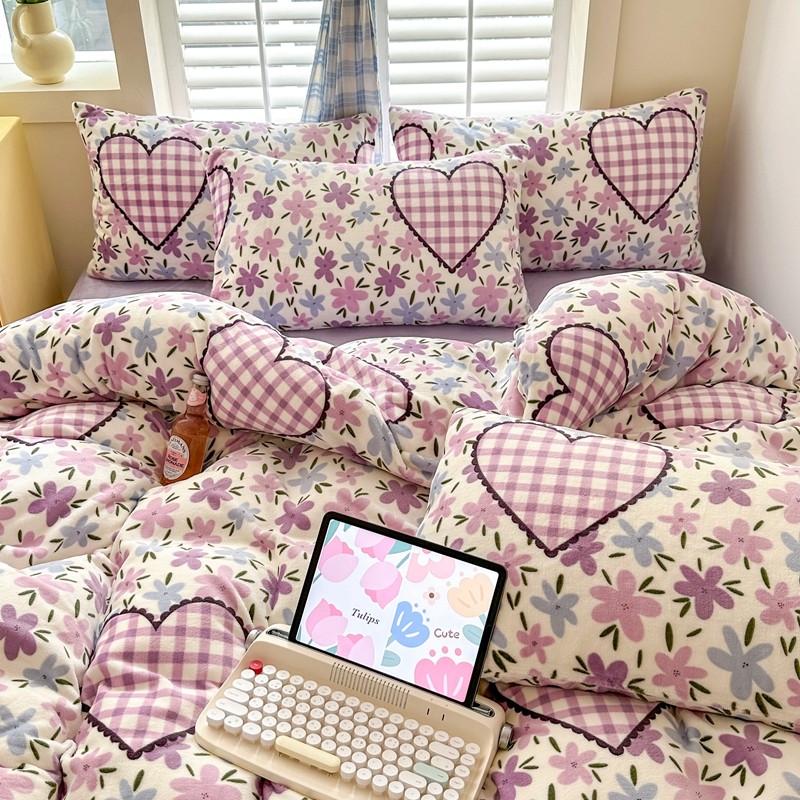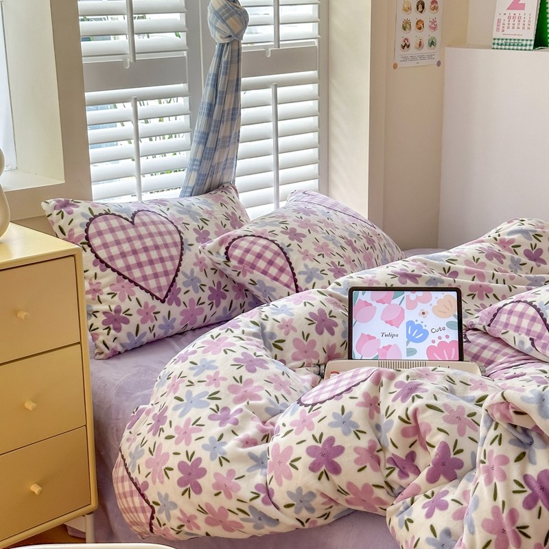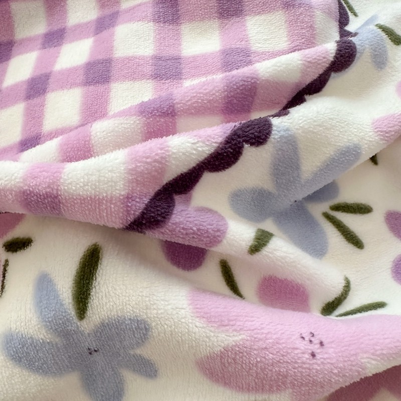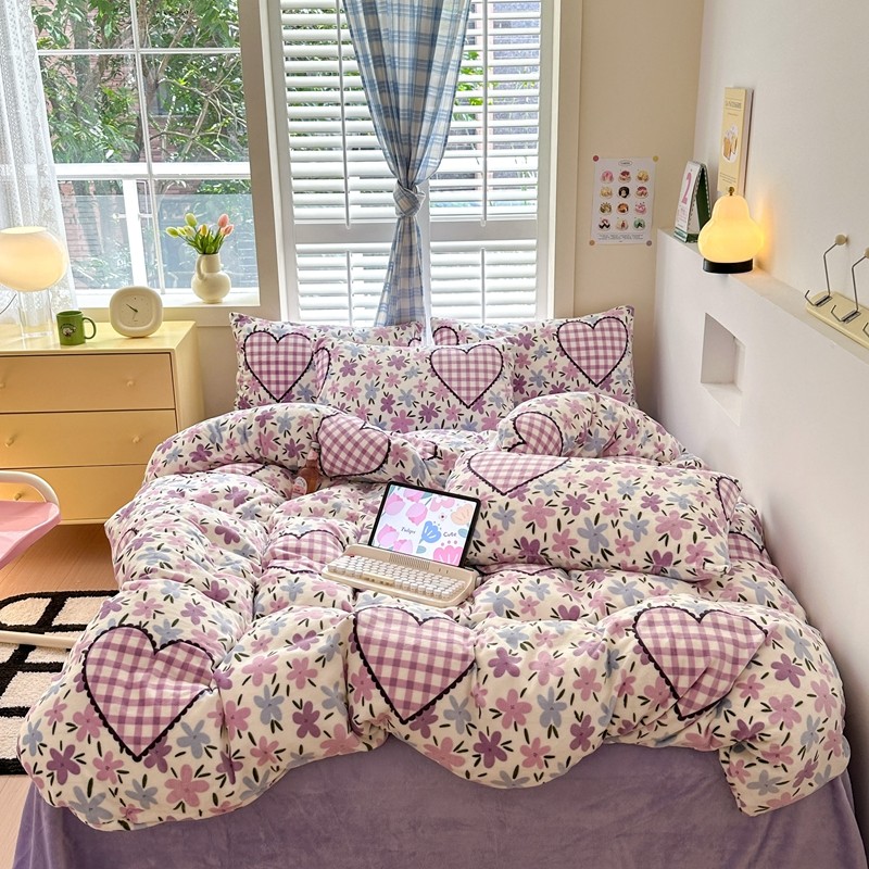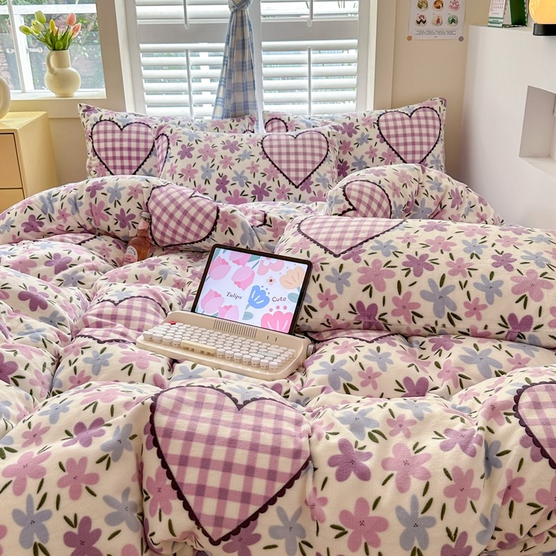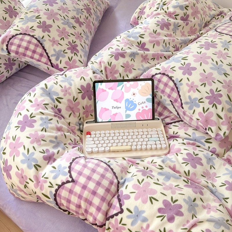 2023秋冬新款220克高克重牛奶绒印花四件套 紫花