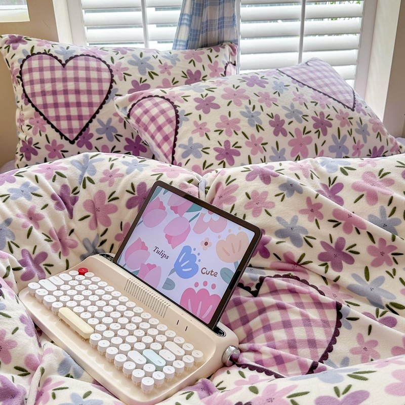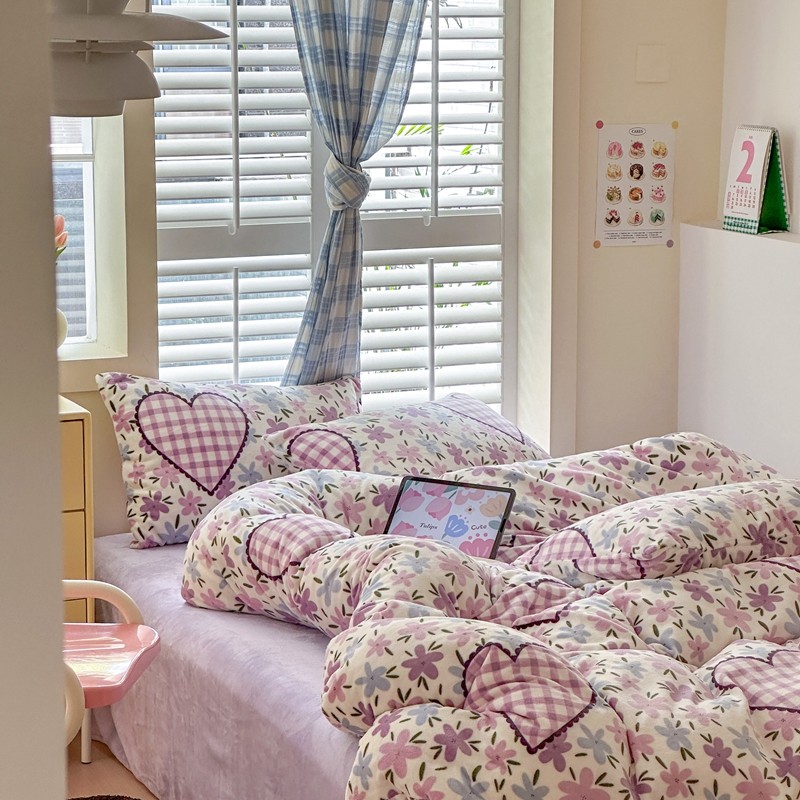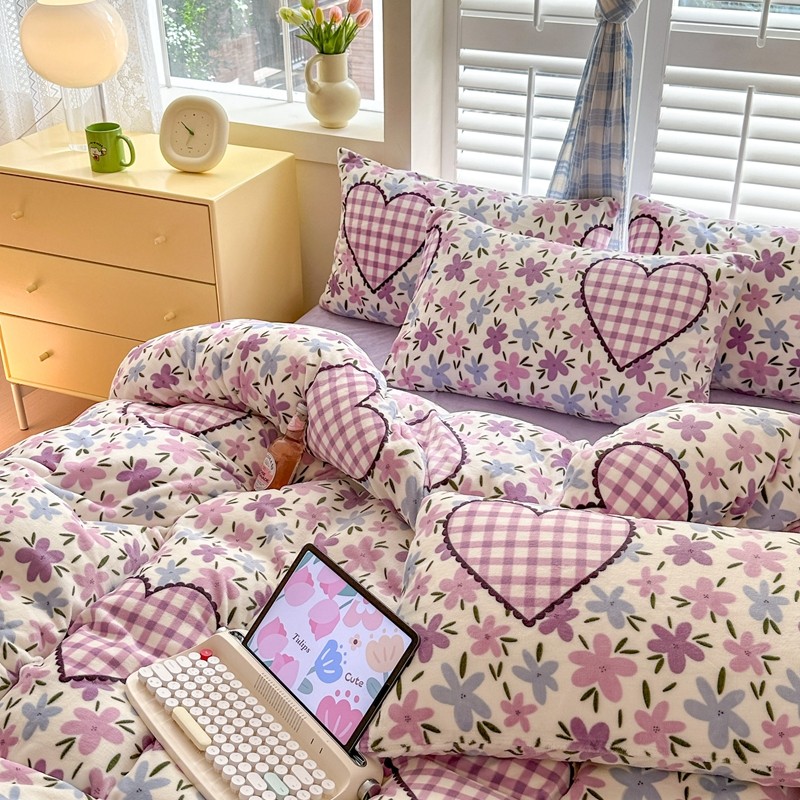 (总)N先生+V 13814689556 发大图/买家秀 2025新款韩式博主风花边款ins卡通牛奶绒四件套,爱心美蒂,彩色蝴蝶结,格子兔兔,欢乐猫咪,可爱熊仔,快乐独角兽,美梦甜心,波点狗狗,顽皮帕恰