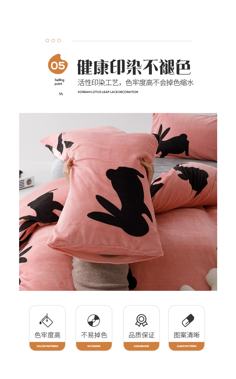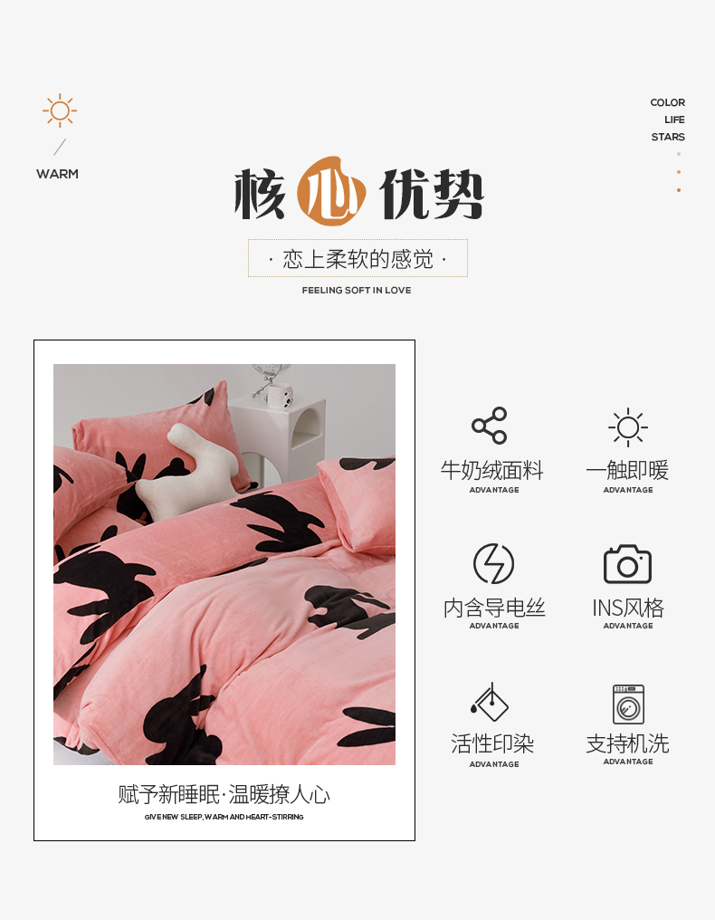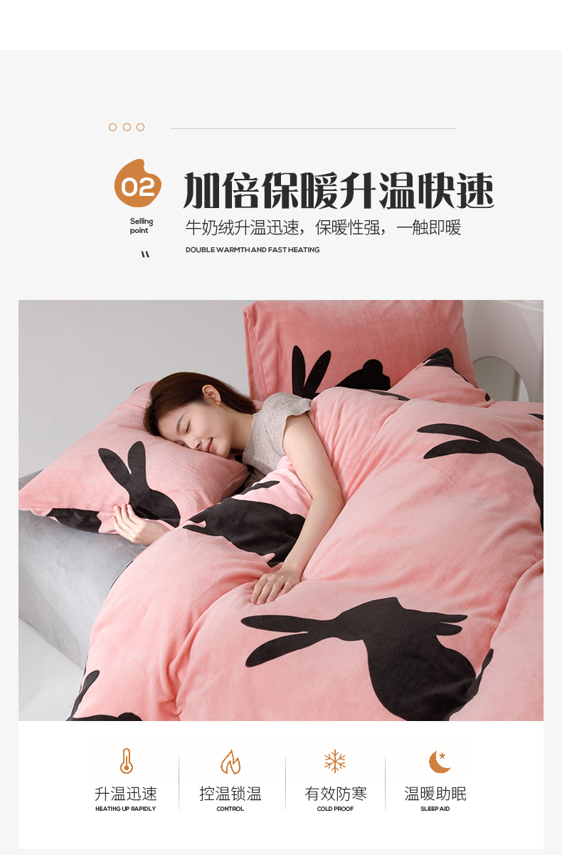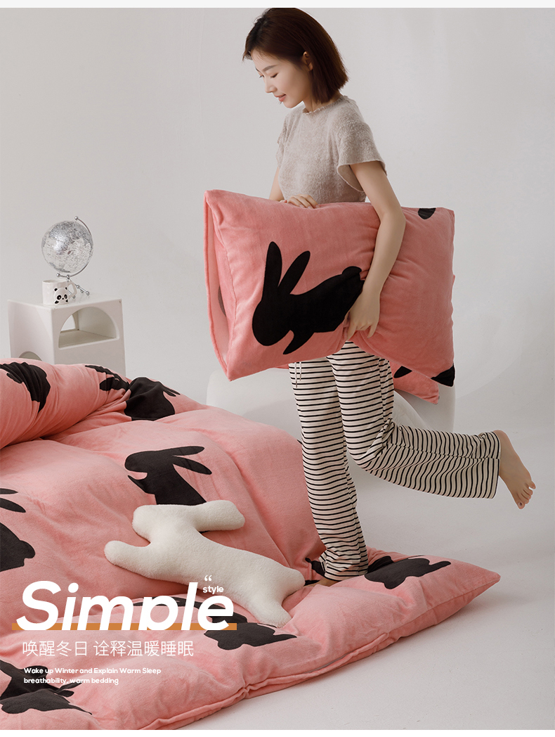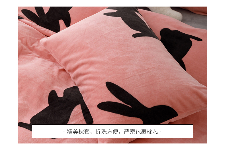 商品名称:桃子2023新款ins轻奢简约潮派极简高级时尚兔本兔高克重牛奶绒系列四件套 绒兔本兔-粉玉