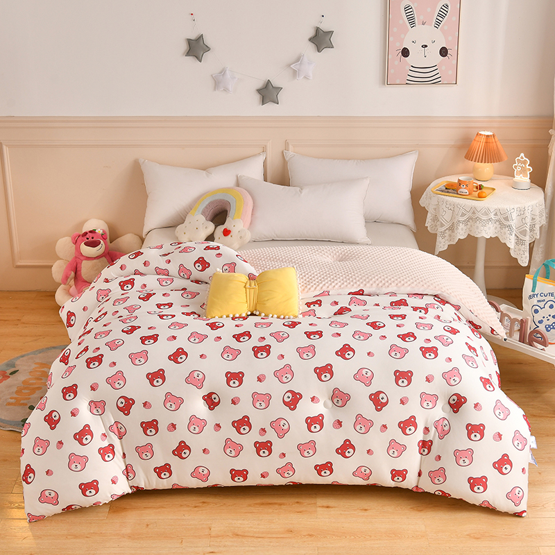 牛魔王家居 2023新款A类针织棉豆豆被子抗菌纤维被芯冬被 草莓小熊