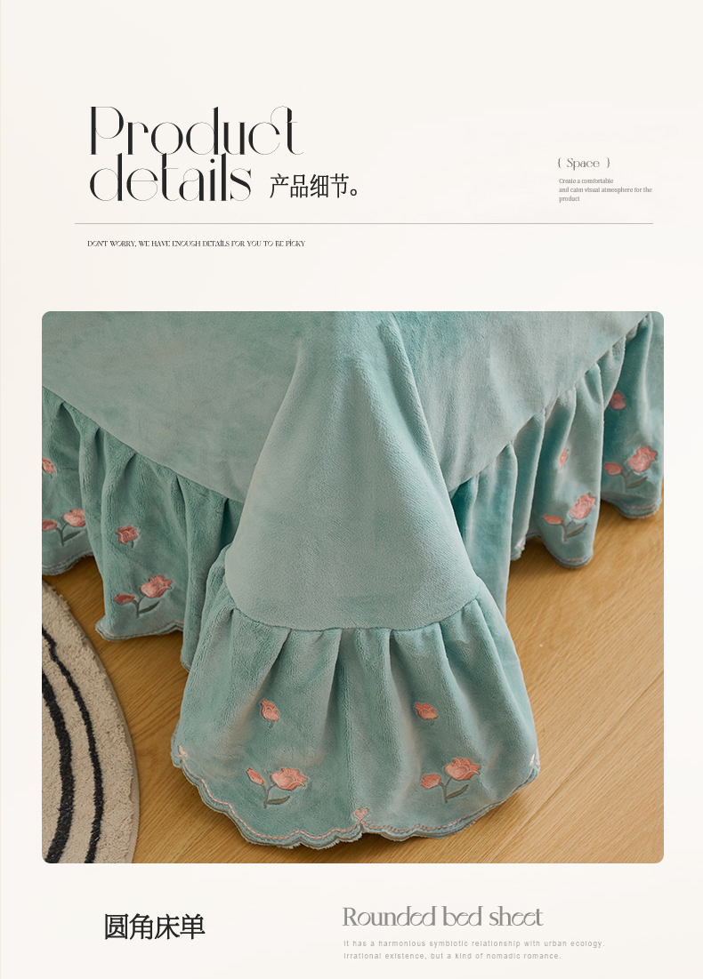 (总)恒爱 2022秋冬水晶绒翩翩花舞夹棉床裙四件套,大红色,豆沙红,橄榄绿,公主粉,桔色,咖啡色,孔雀绿,拉菲红,罗兰紫,玫红色,美人玉,米白色,米驼色,抹茶绿,浅灰色,紫色