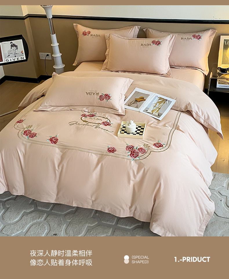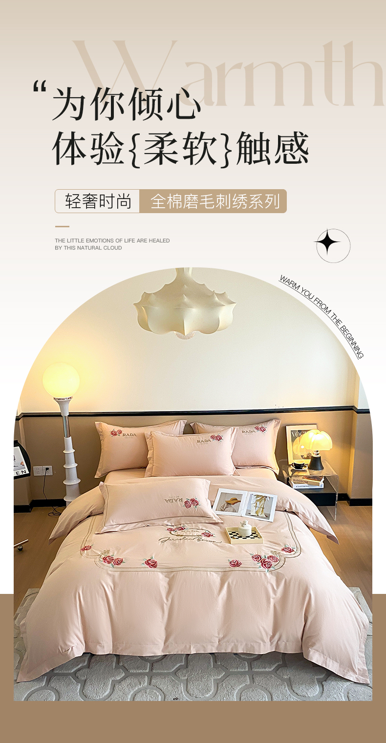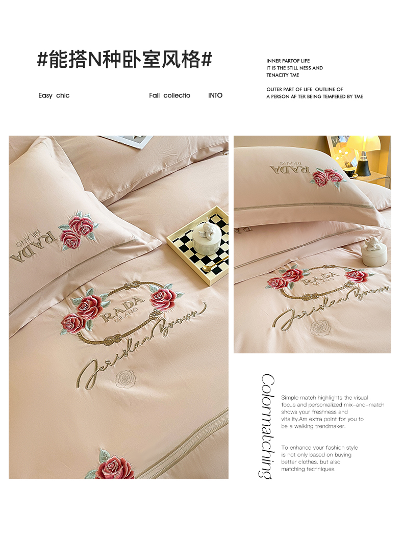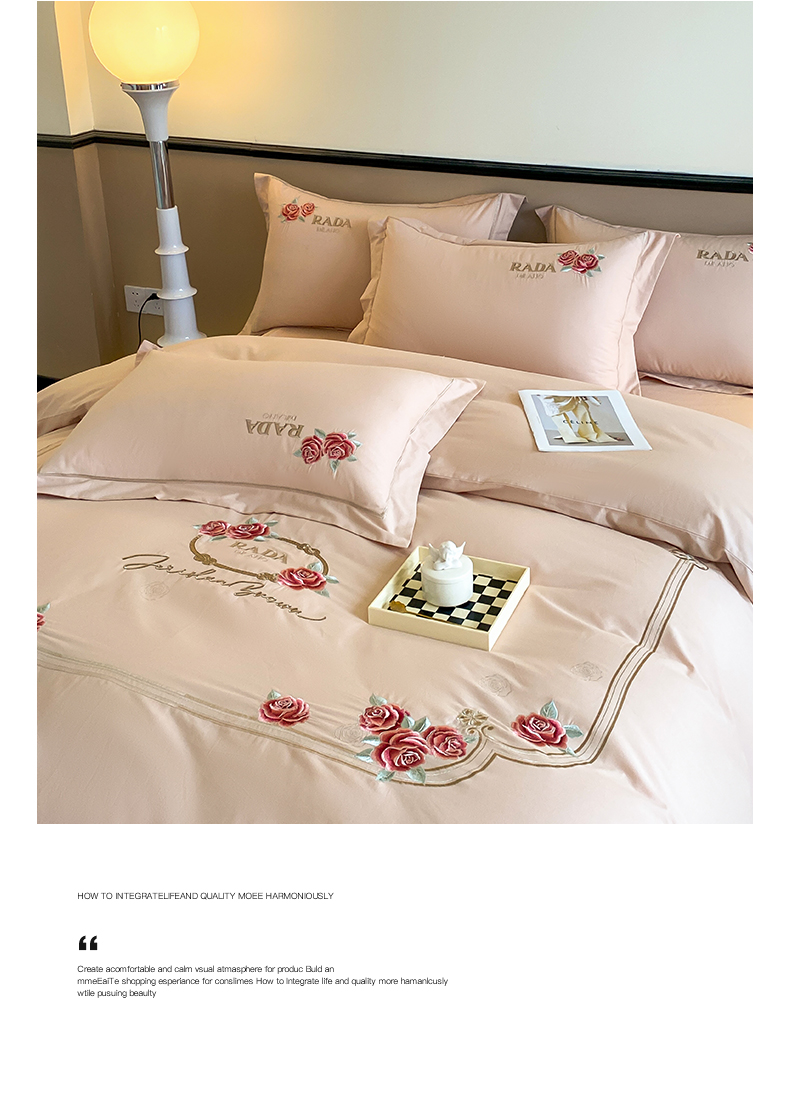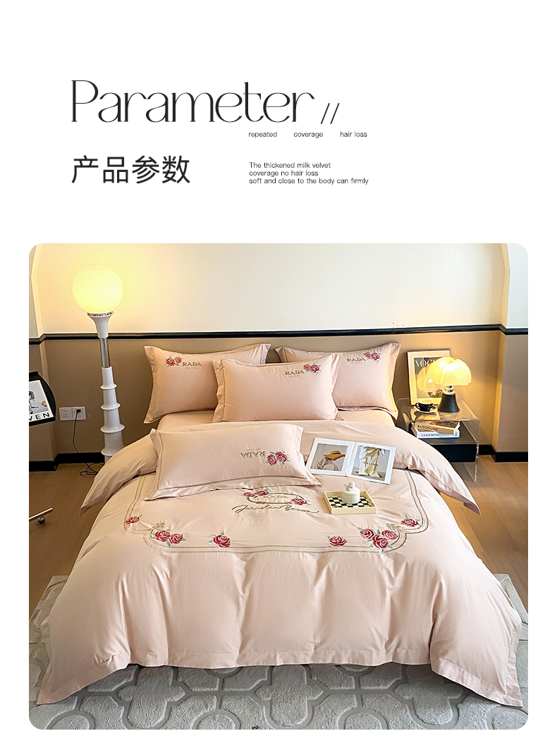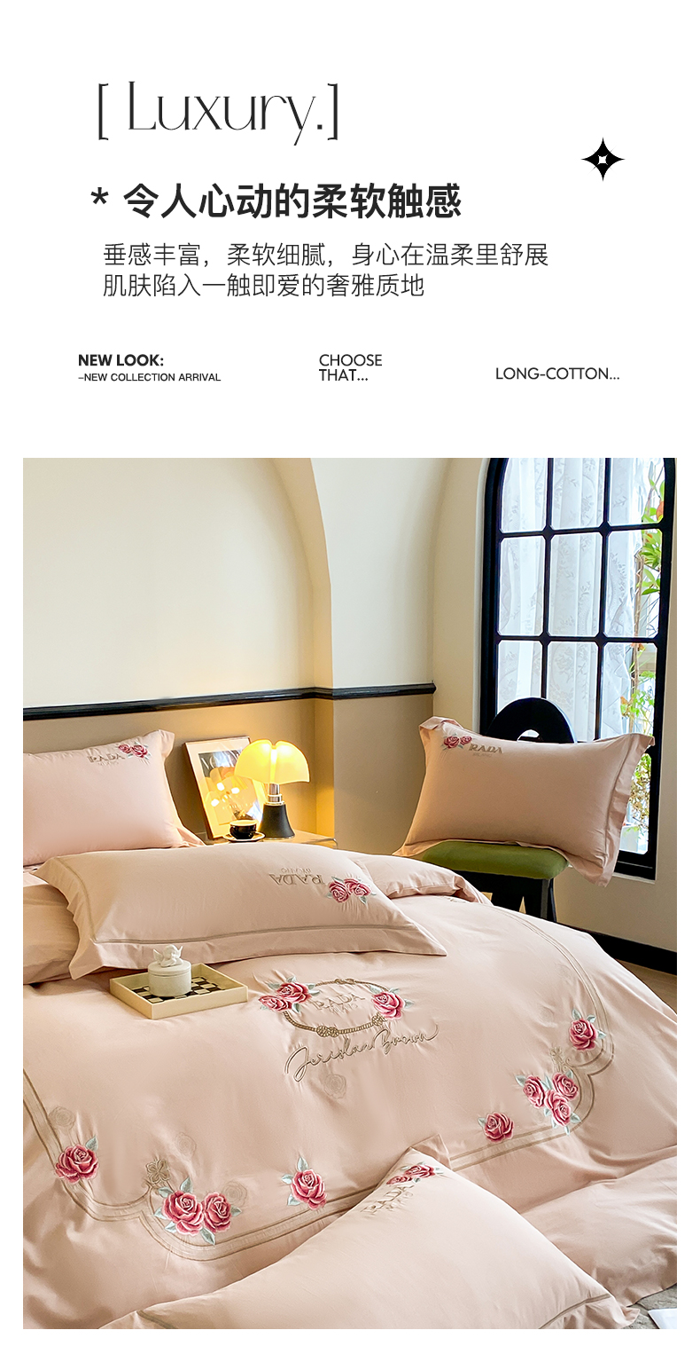 理想家家纺 2023新款全棉磨毛刺绣四件套 玫瑰庄园 玉