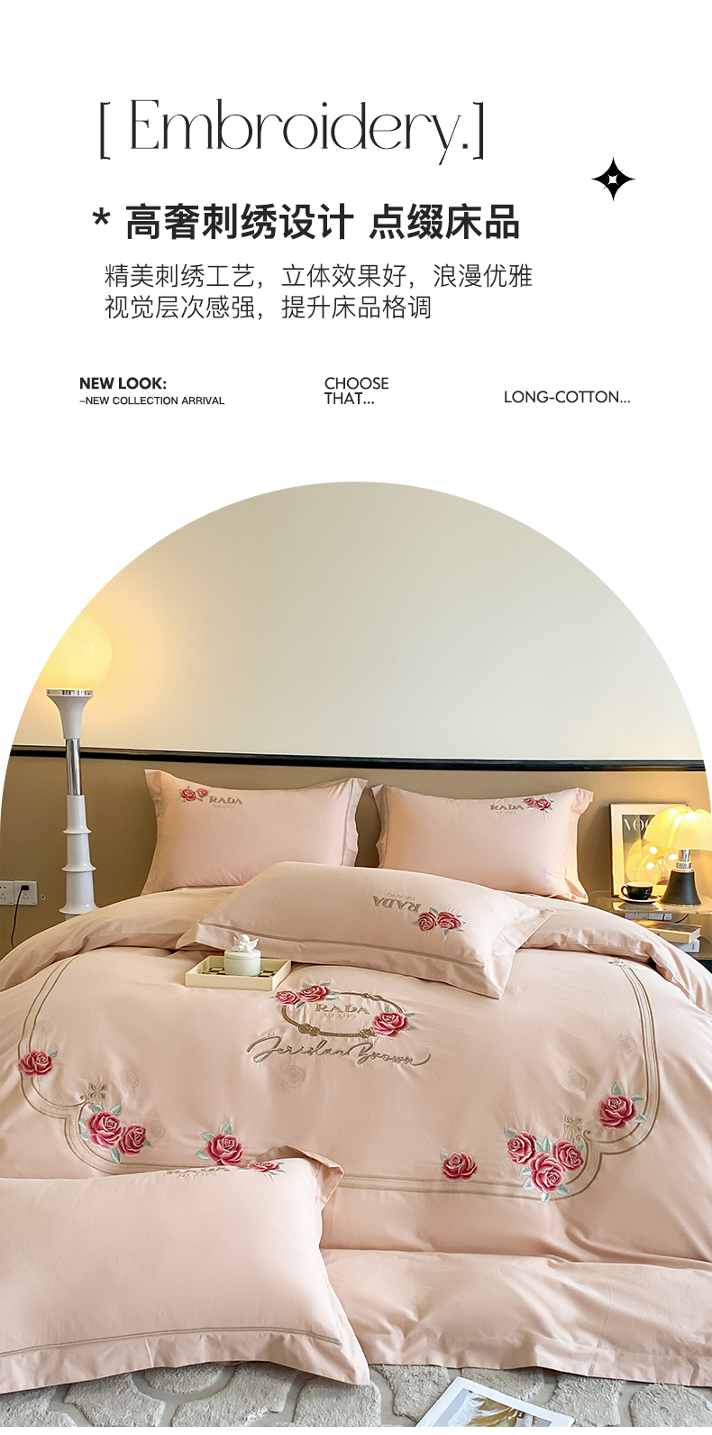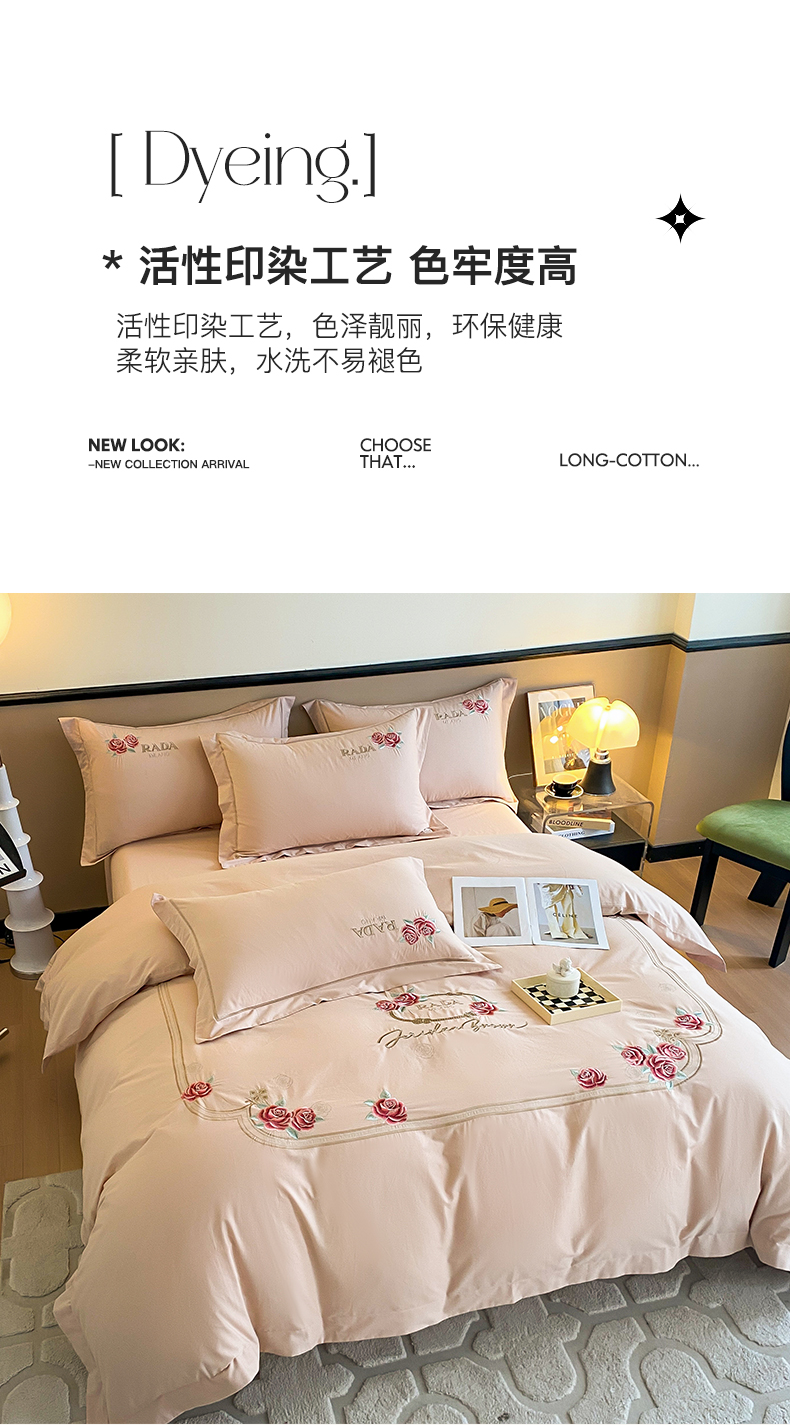 (总)理想家家纺 2025新款纯棉轻奢刺绣四件套--心愿系列场景二,心愿粉,心愿红,心愿黄,心愿蓝