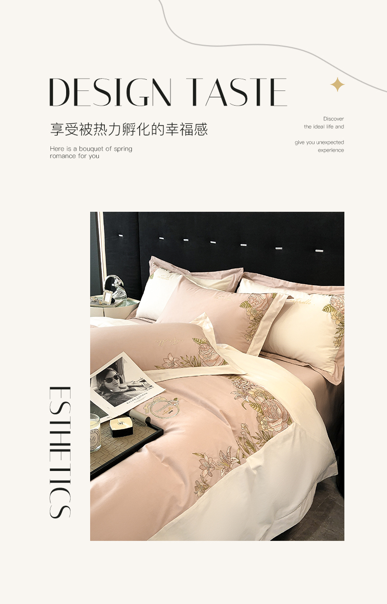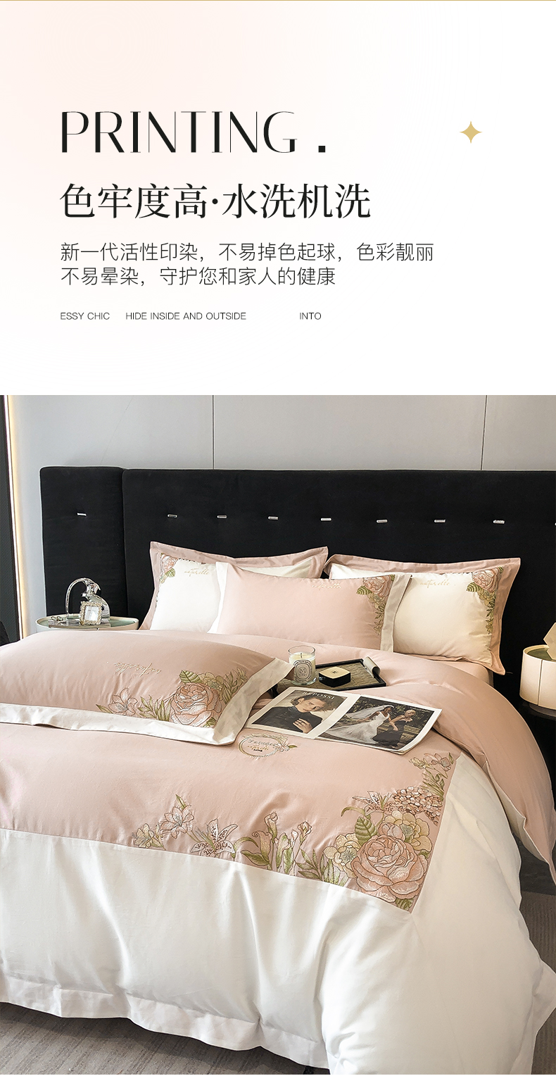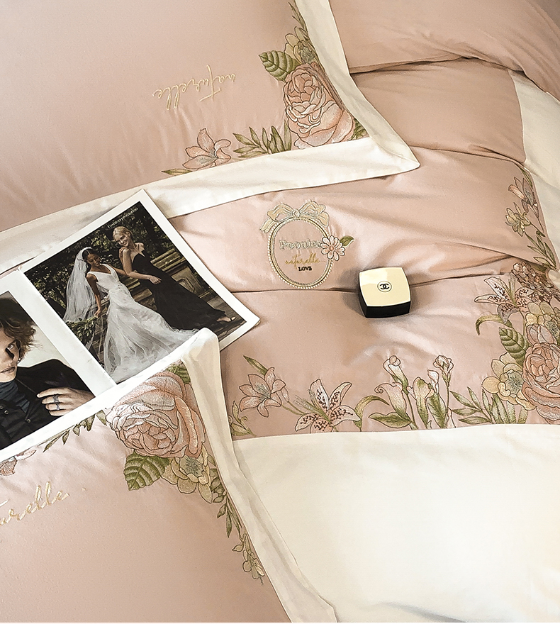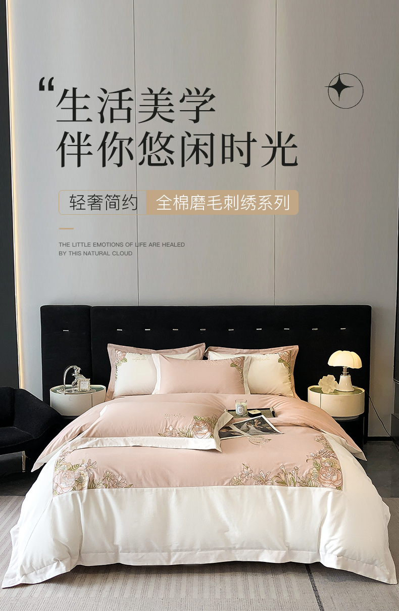 (总)理想家家纺 2025新款纯棉轻奢刺绣四件套-小秘密系列场景二,小秘密 粉,小秘密 黄,小秘密 蓝