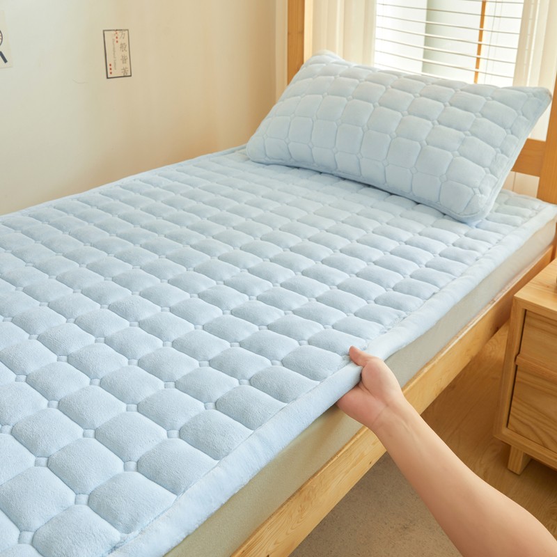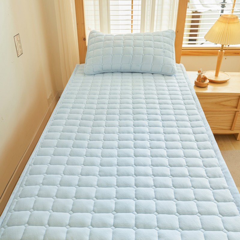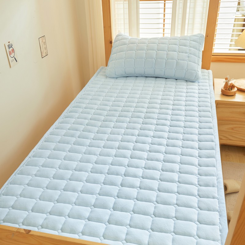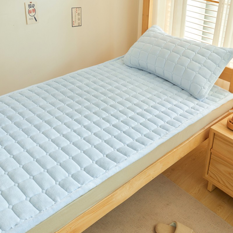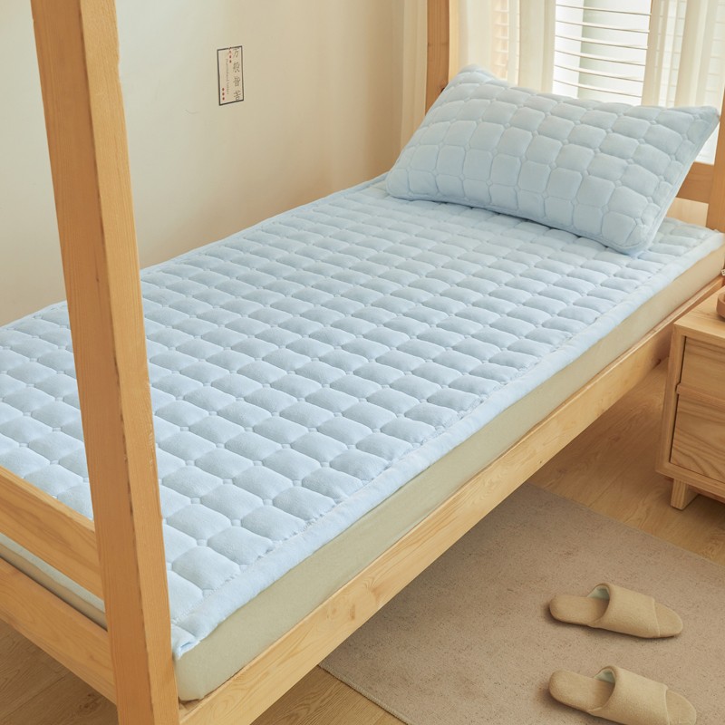 梵朴 2023新款牛奶绒夹棉学生床褥床垫-纯色系列 淡雅蓝
