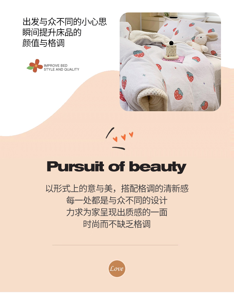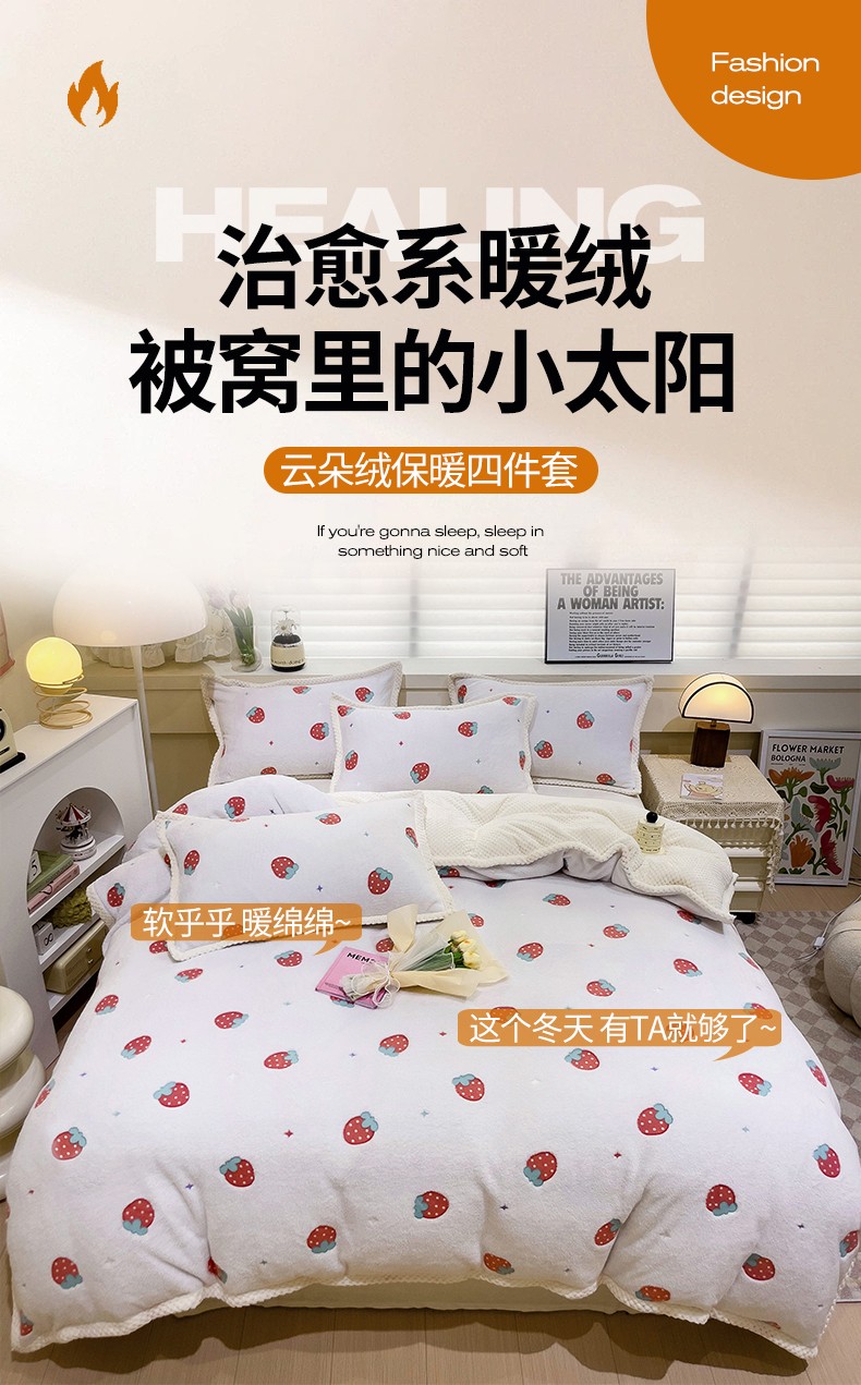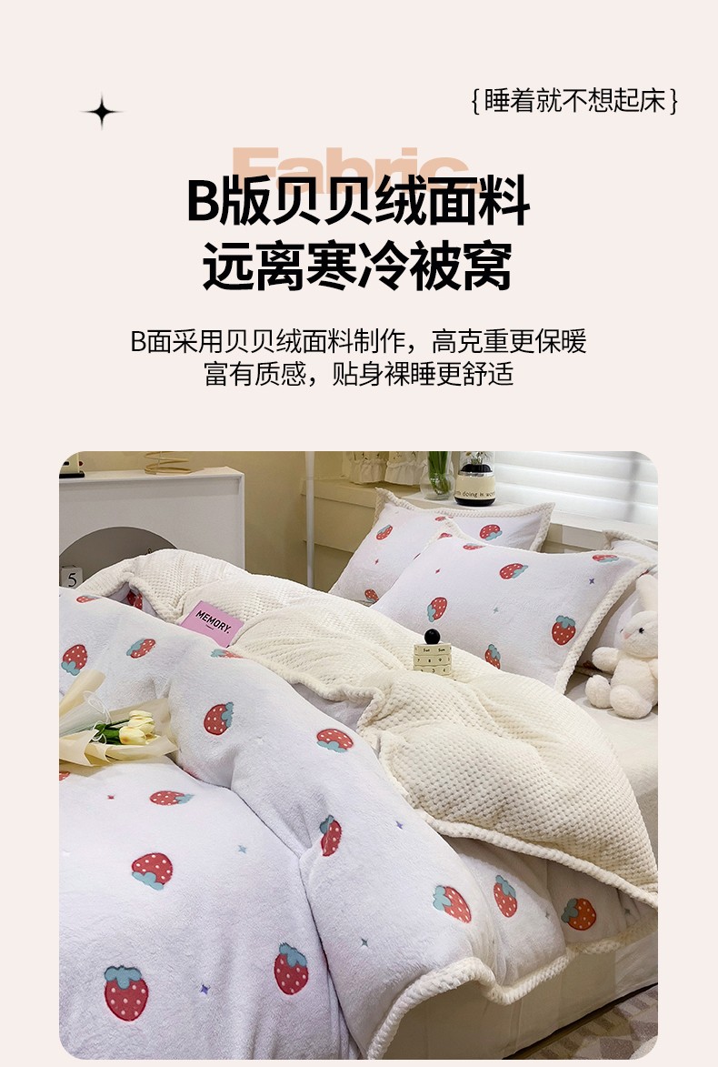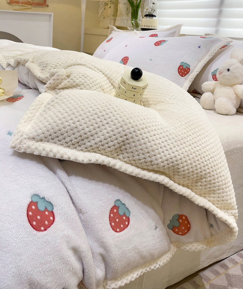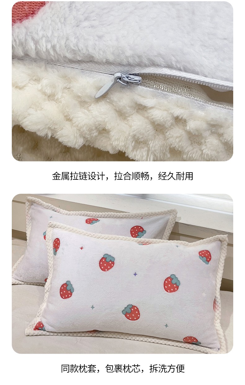 当前位置: 91家纺网 > 商品网购 > 床品套件 > 四件套 > 牛奶绒四件套 > 锦威郎 2023新款云朵绒保暖牛奶绒毛毯绒单被套加绒加厚法莱绒四件套 草莓白