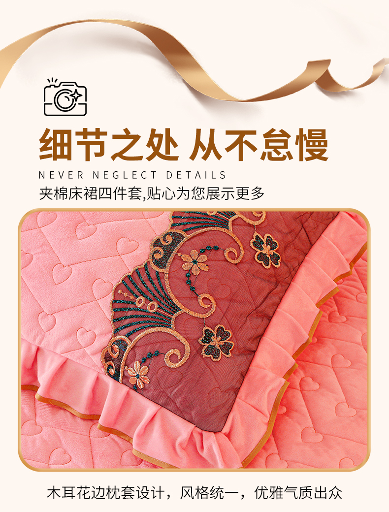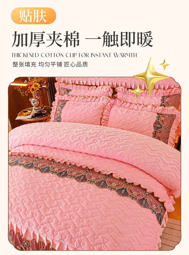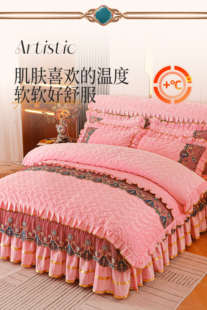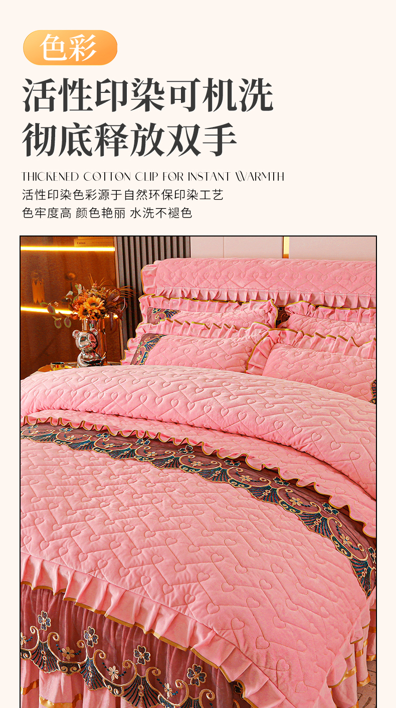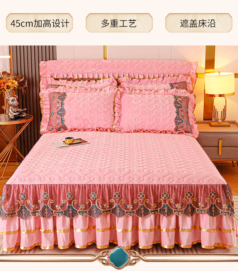 当前位置: 91家纺网 > 商品网购 > 床品套件 > 四件套 > 水晶绒四件套 > 新款心心相印蕾丝款水晶绒保暖床裙四件套 心心相印蕾丝款-粉玉