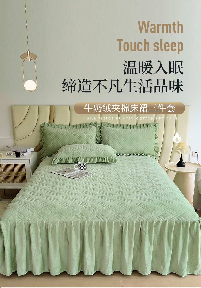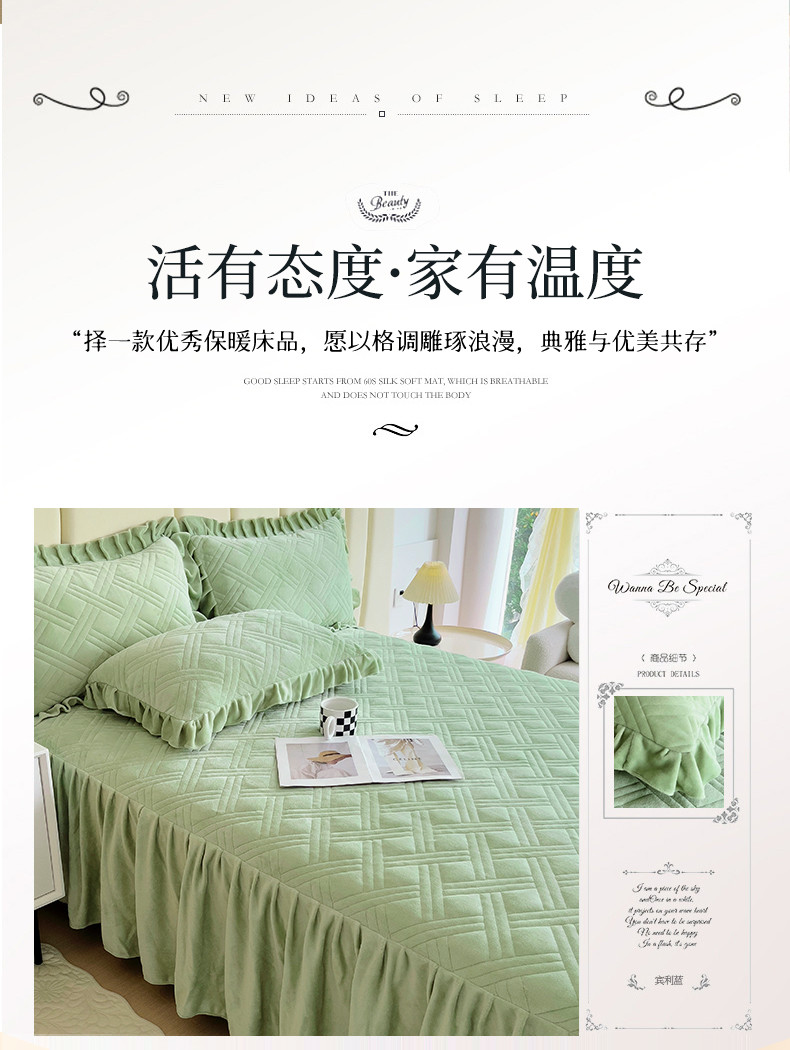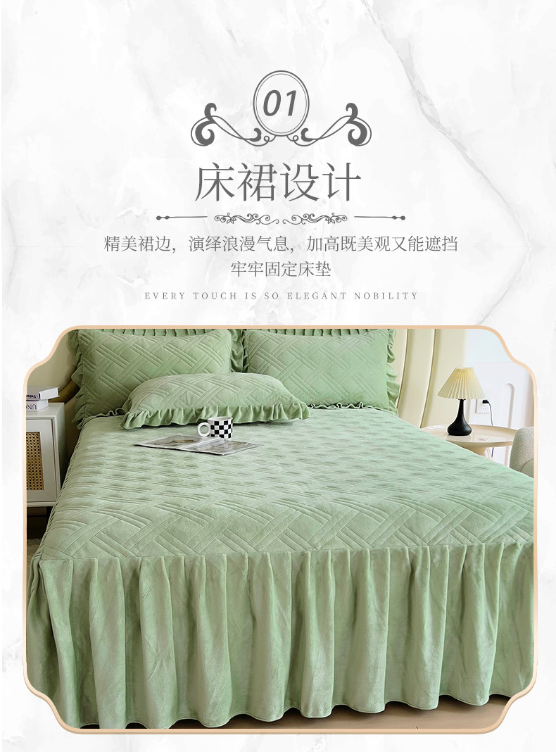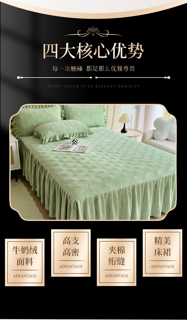 十个点家纺 2024新款牛奶绒单床裙-欣雅 奶油绿