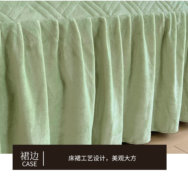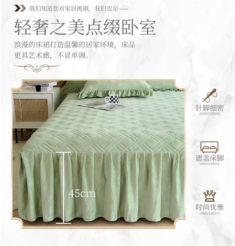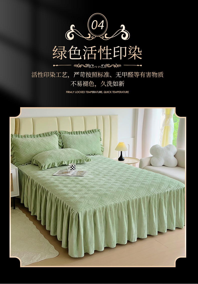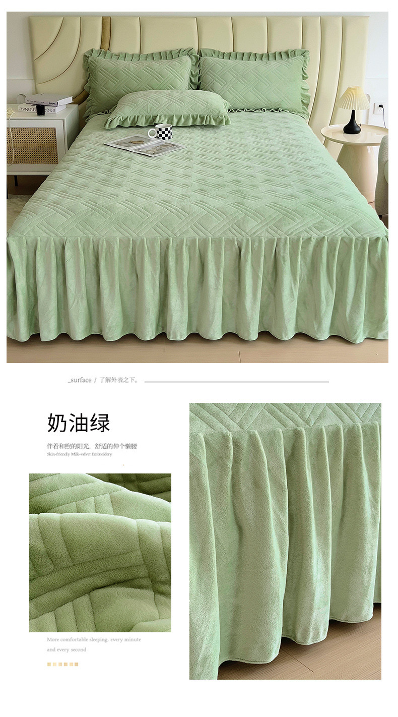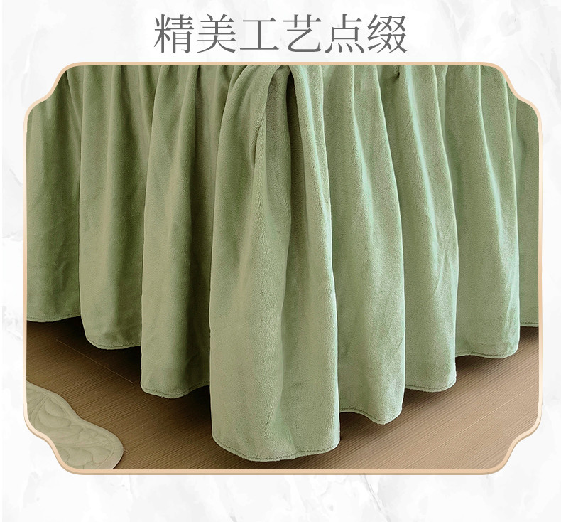 商品名称:十个点家纺 2024新款牛奶绒单床裙-欣雅 奶油绿