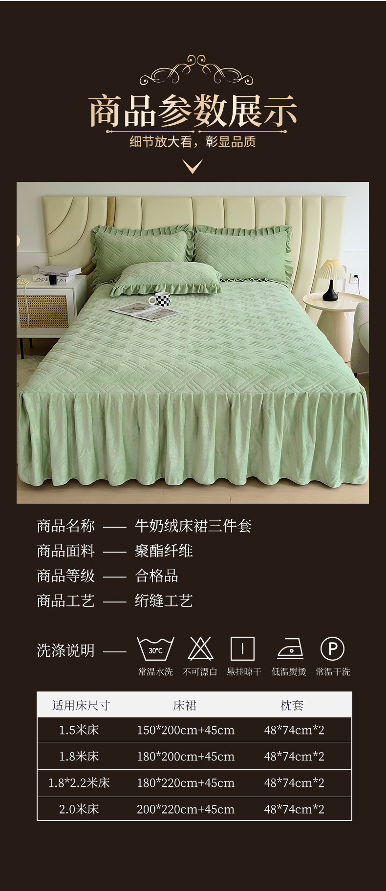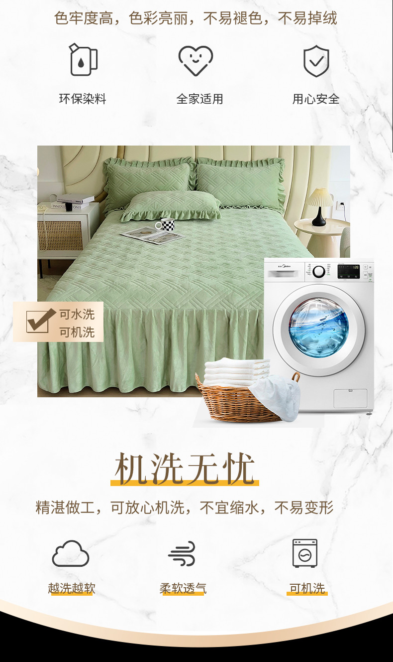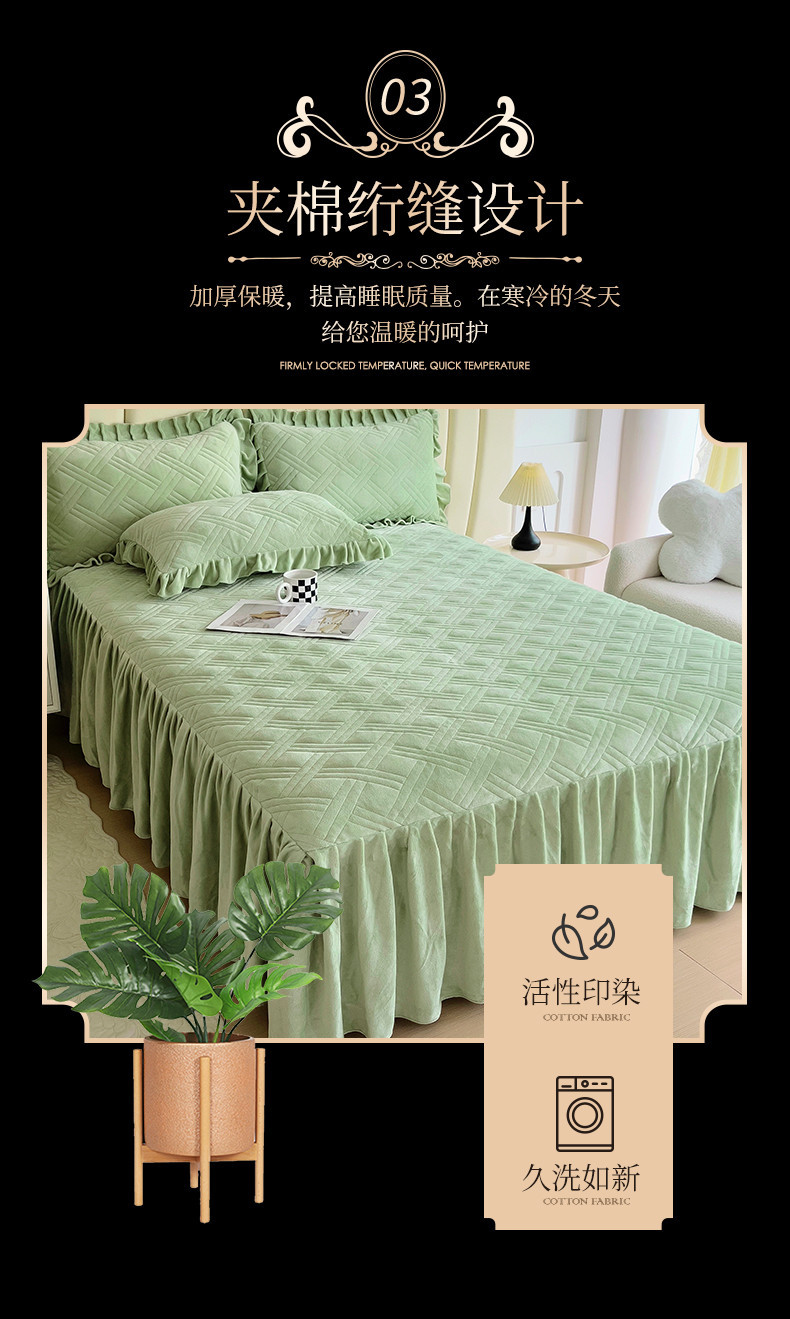 商品名称:十个点家纺 2024新款牛奶绒单床裙-欣雅 奶油绿
