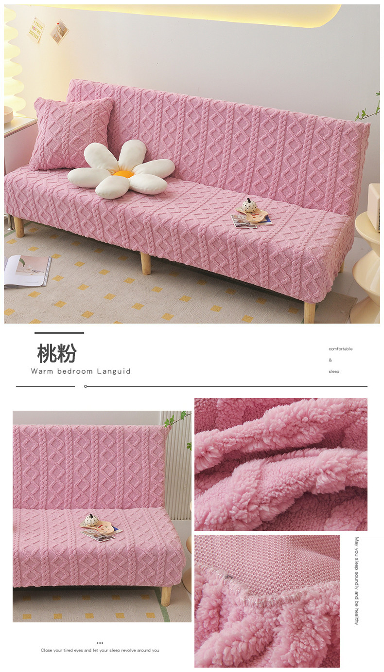 商品名称:启博家纺 2023新款简约提花绒无扶手沙发套 桃粉
