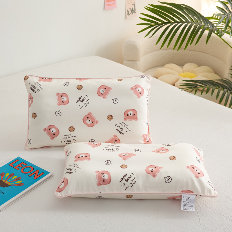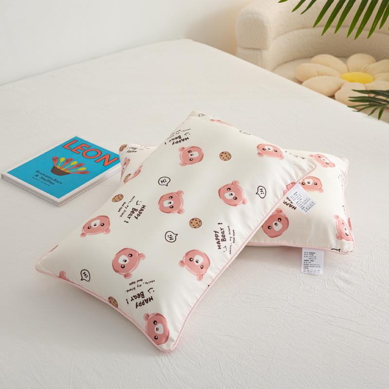 萌番宝 2023新款全棉儿童60支枕芯枕套午睡枕A类双面枕 曲奇粉熊