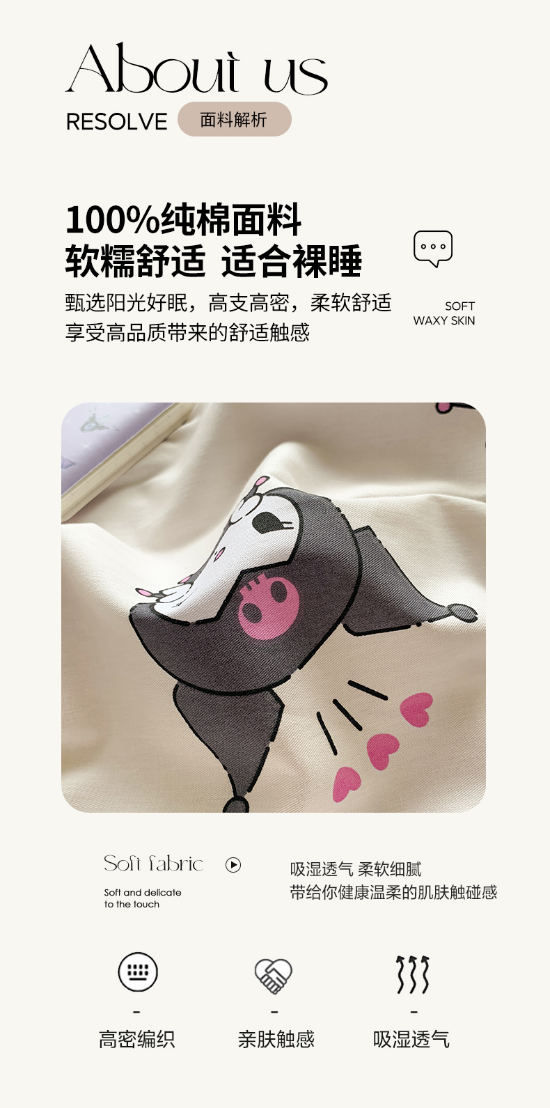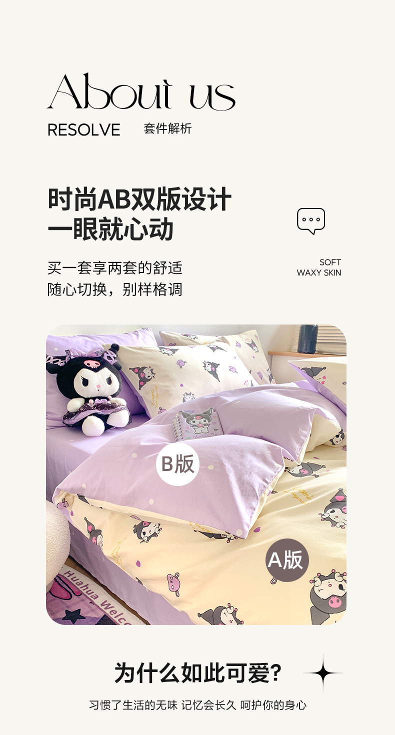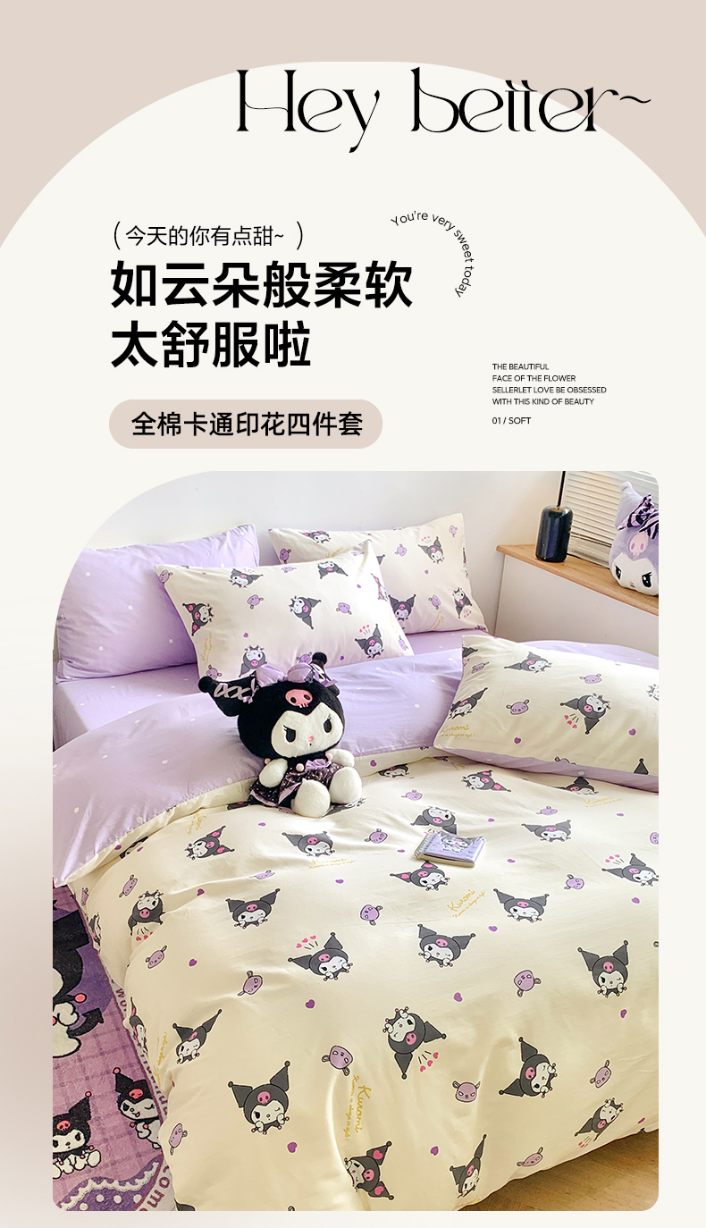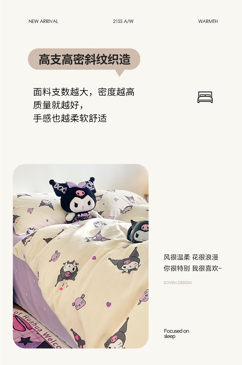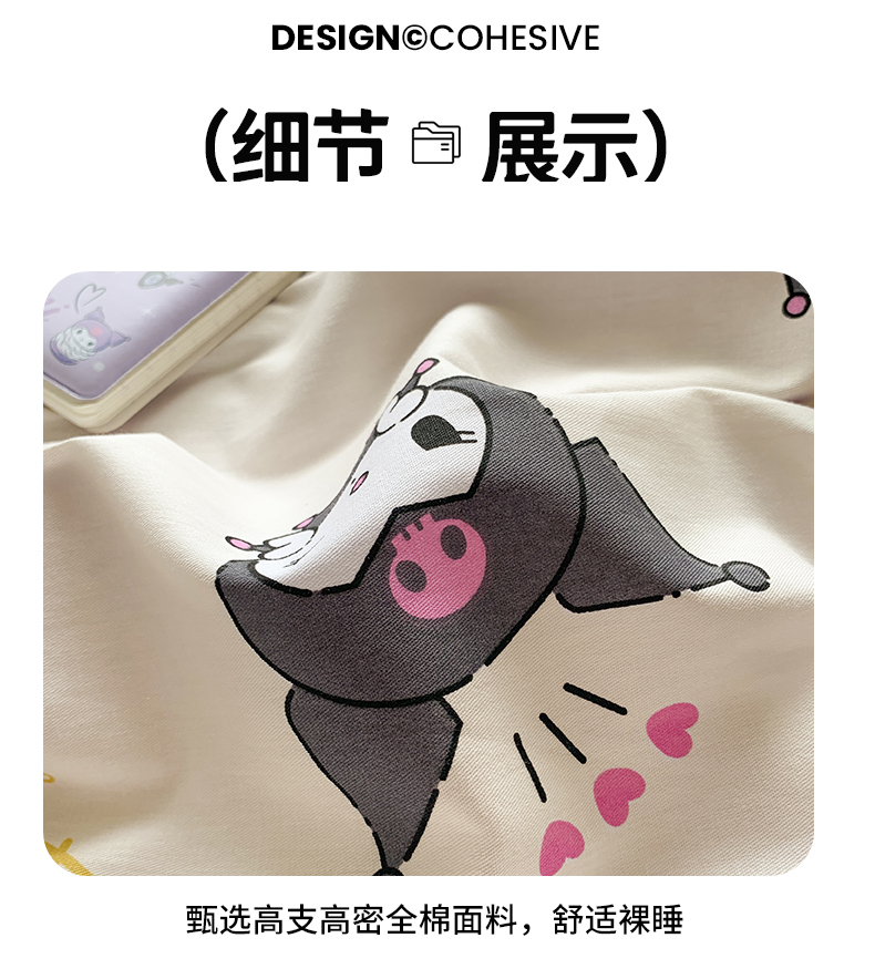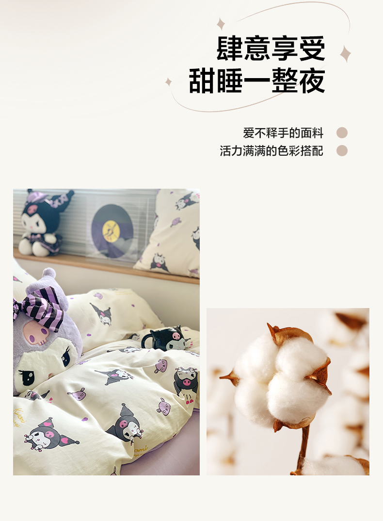 商品名称:朵希曼 2025新款全棉三丽鸥卡通印花系列四件套 淘气库洛米