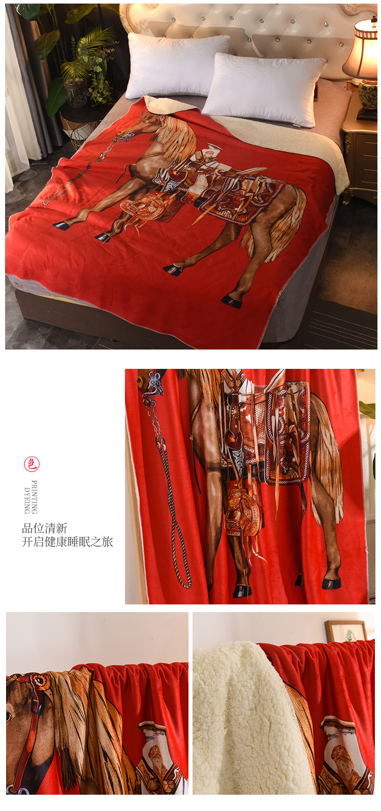 商品名称:爵仕家纺 2023新款羊羔绒毯宫廷风骏马系列 红马