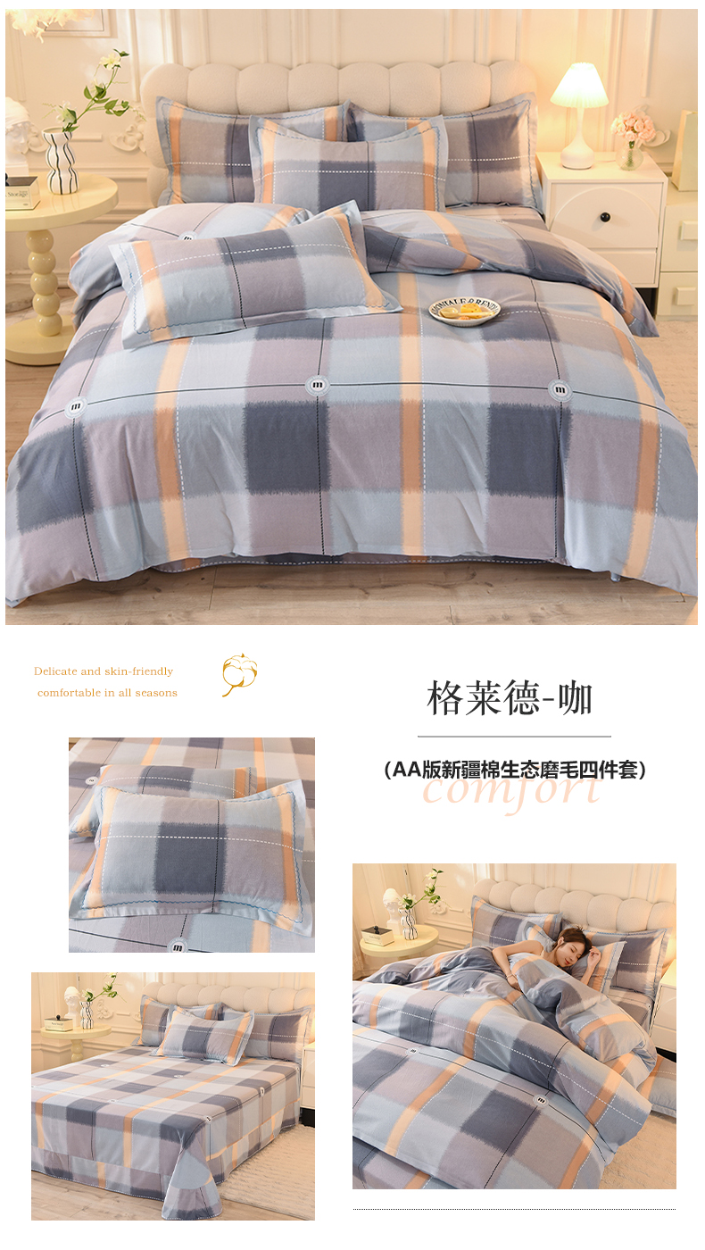 当前位置: 91家纺网 > 商品网购 > 床品套件 > 四件套 > 全棉普通四件套 > 巧玲珑 2023新款高支高密A版生态四件套 格莱德-咖