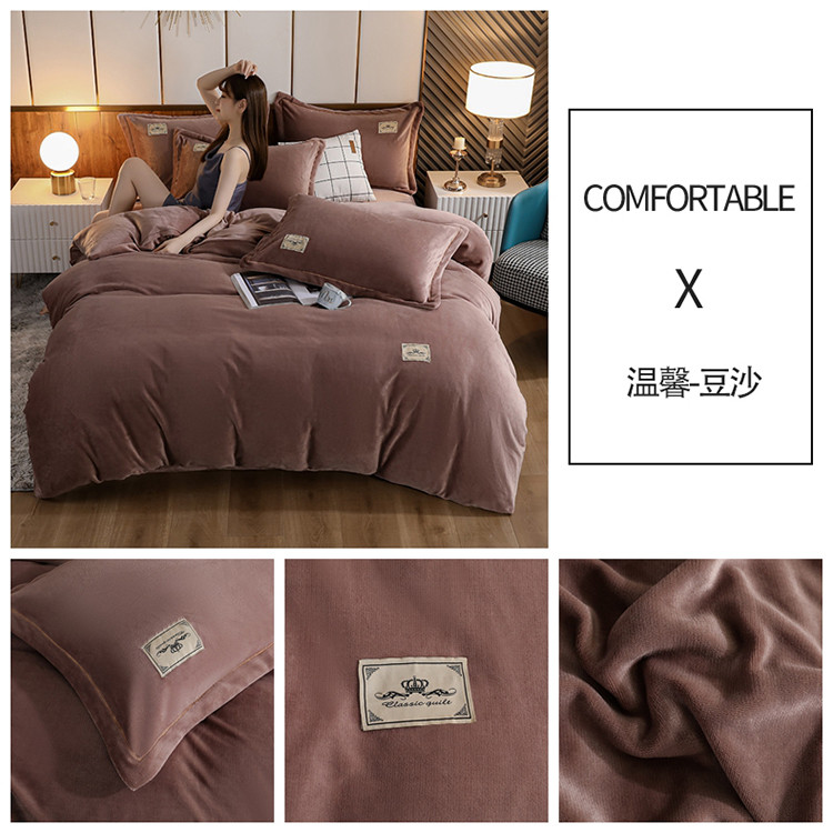 商品名称:畅畅 2023新款加厚260克全消光牛奶棉印花臻棉绒四件套 豆沙坨