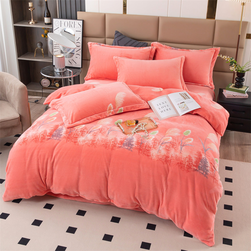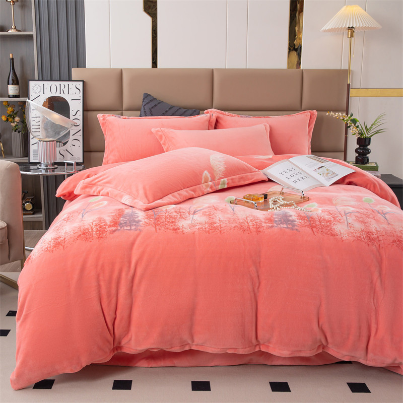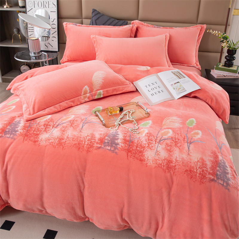 商品名称:畅畅 2023新款加厚260克全消光牛奶棉印花臻棉绒四件套 隐约森林红
