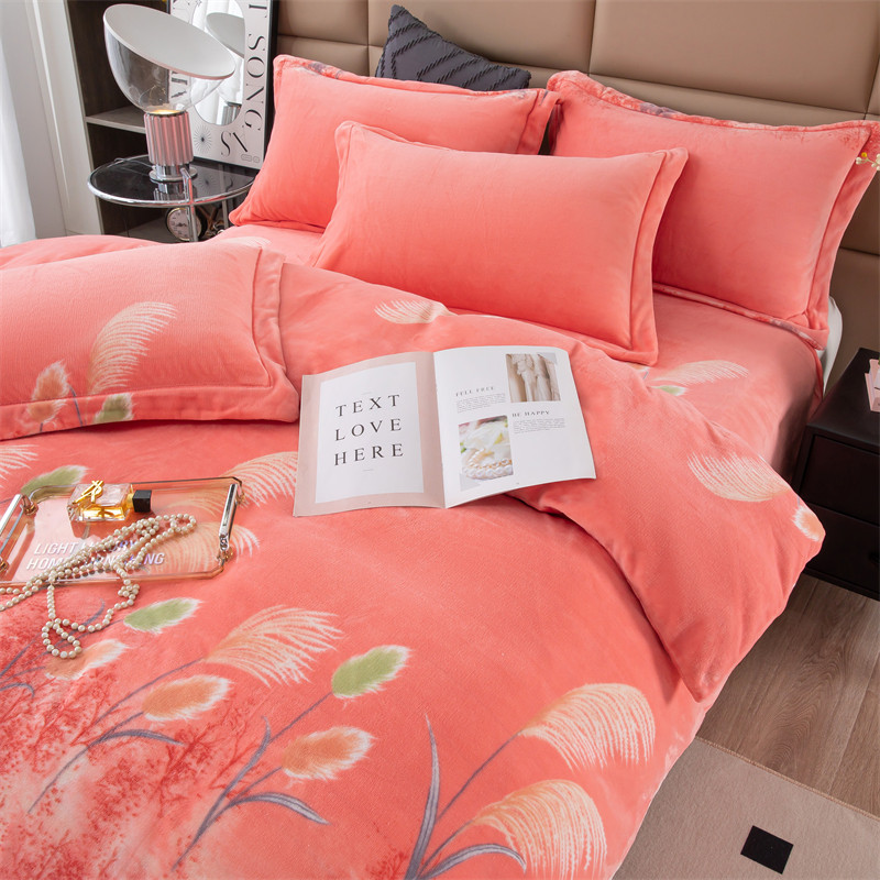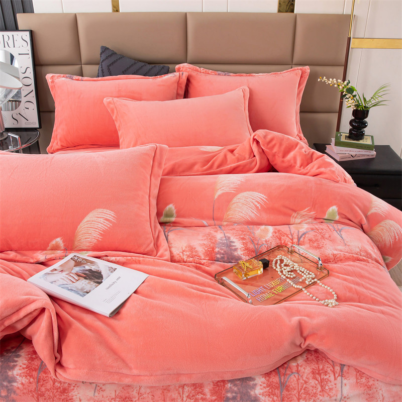 (总)畅畅家纺 2024新款高克重加厚保暖冬季牛奶绒纯色床盖款四件套,豆沙,灰色,天蓝,玉色,中国红