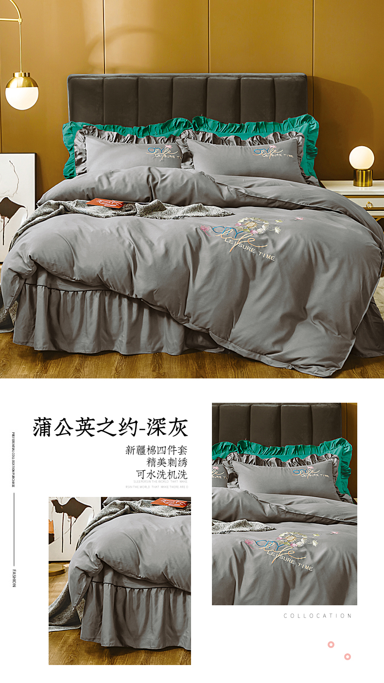 商品名称:伊而梦蚊帐 2023新款仿真丝刺绣四件套--蒲公英之约 蒲公英之约-深灰