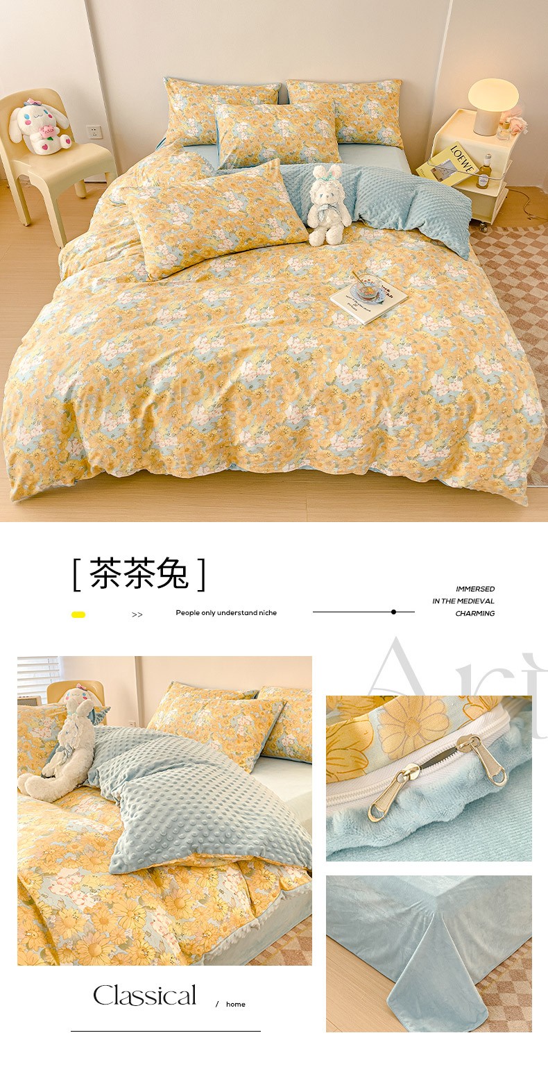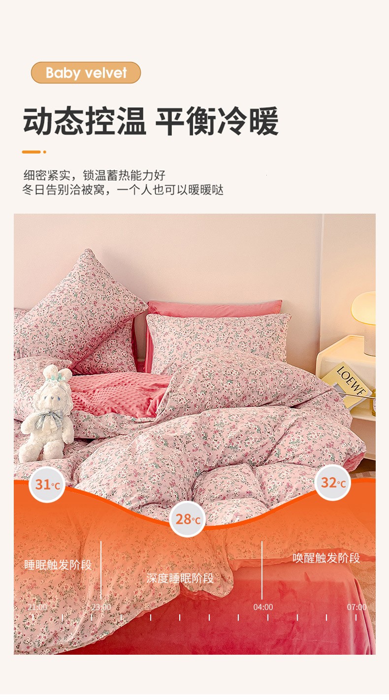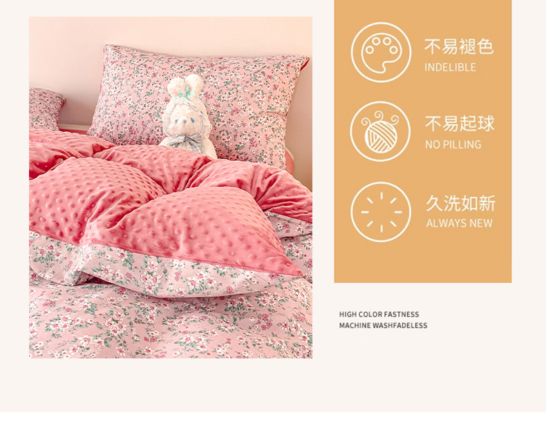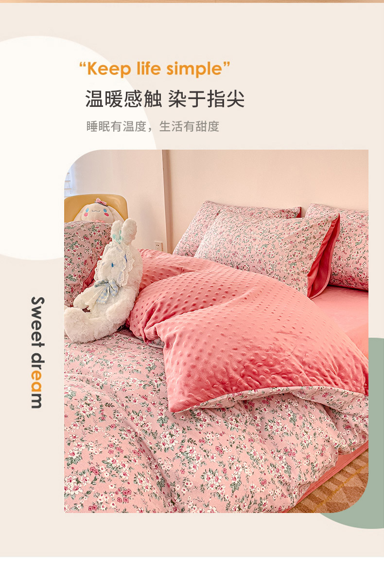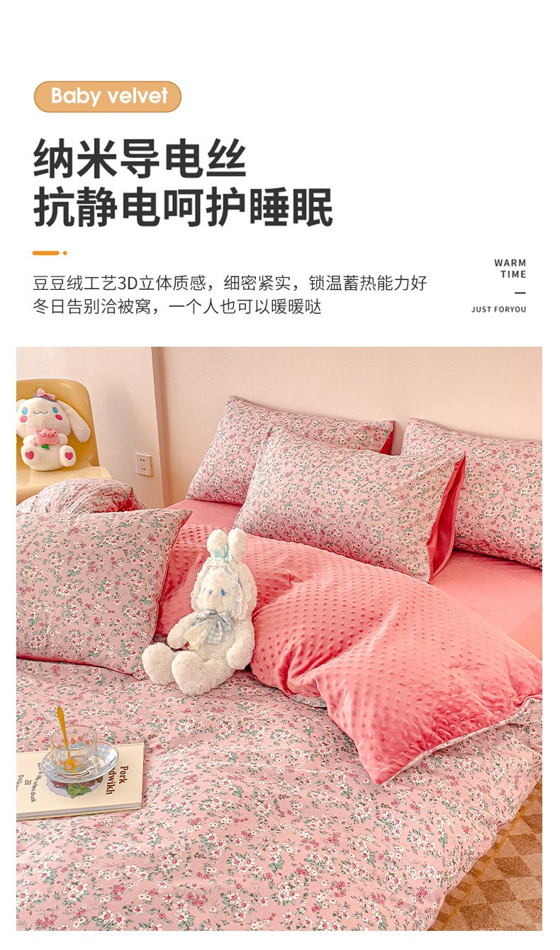 (总)千朵 2023新款棉加绒豆豆绒四件套