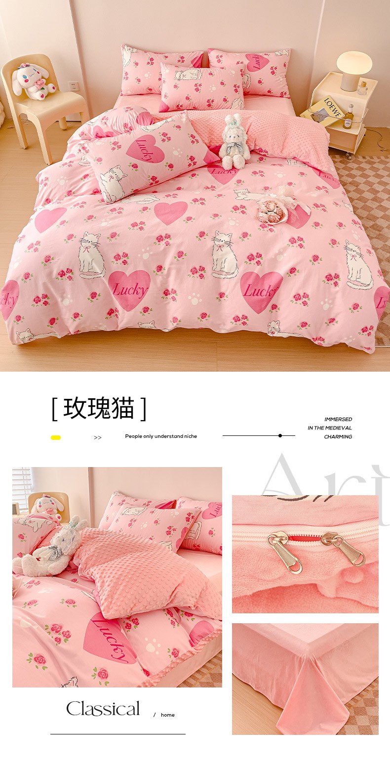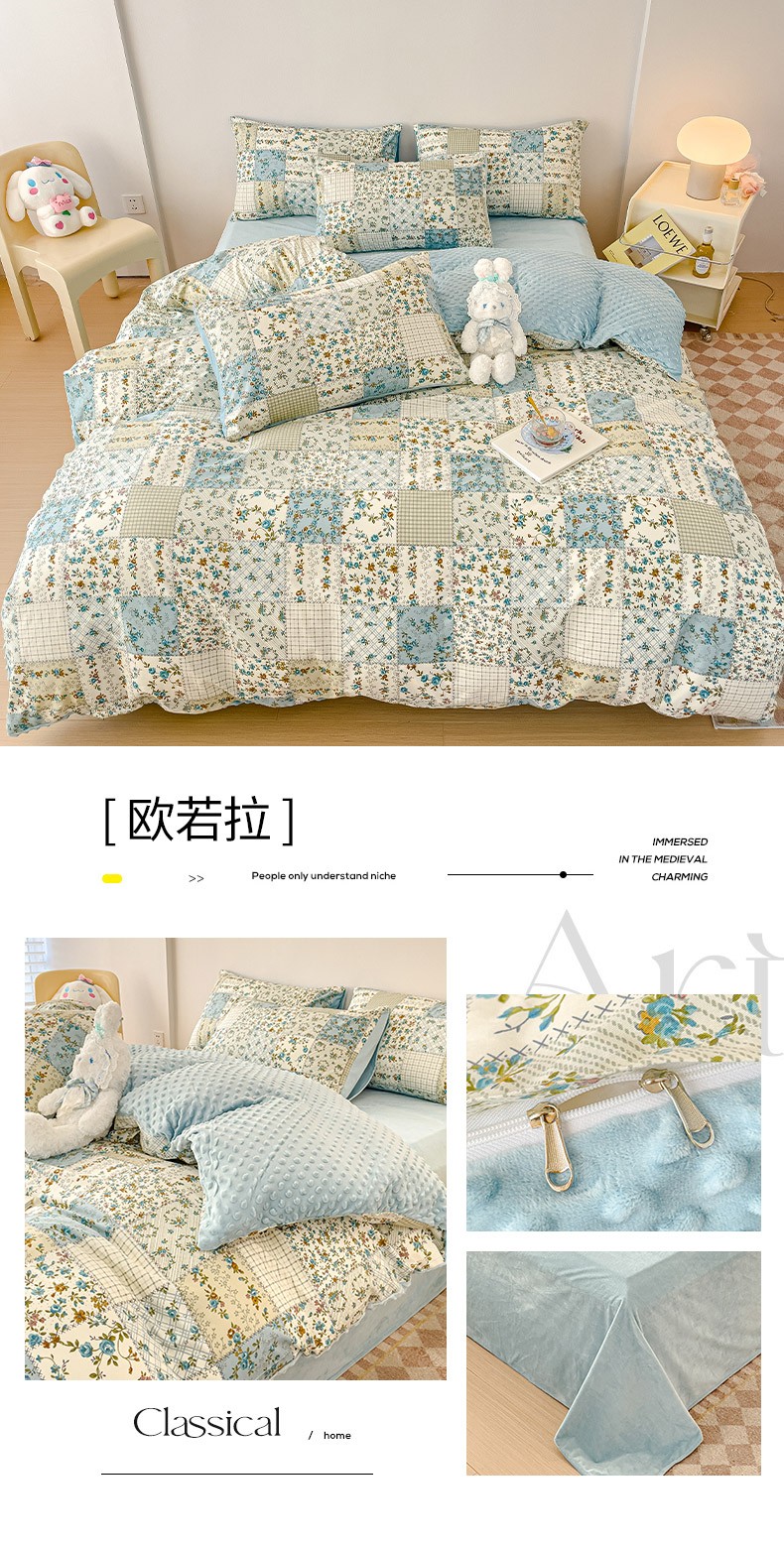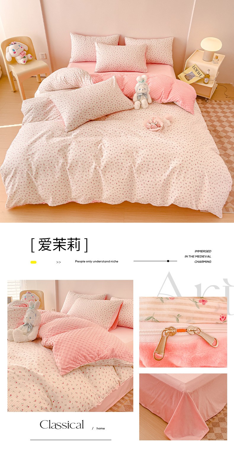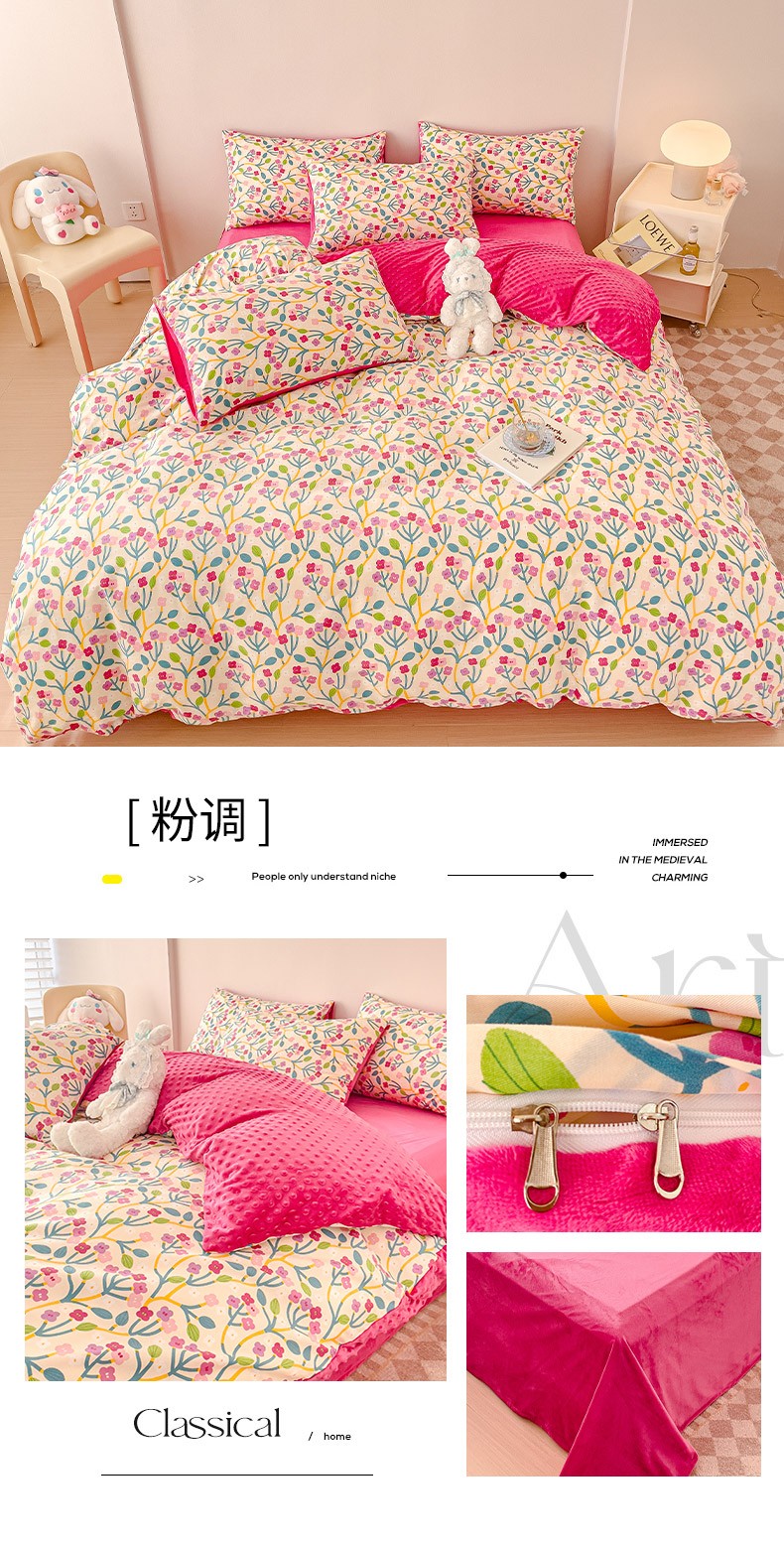 (总)千朵 2023新款棉加绒豆豆绒四件套