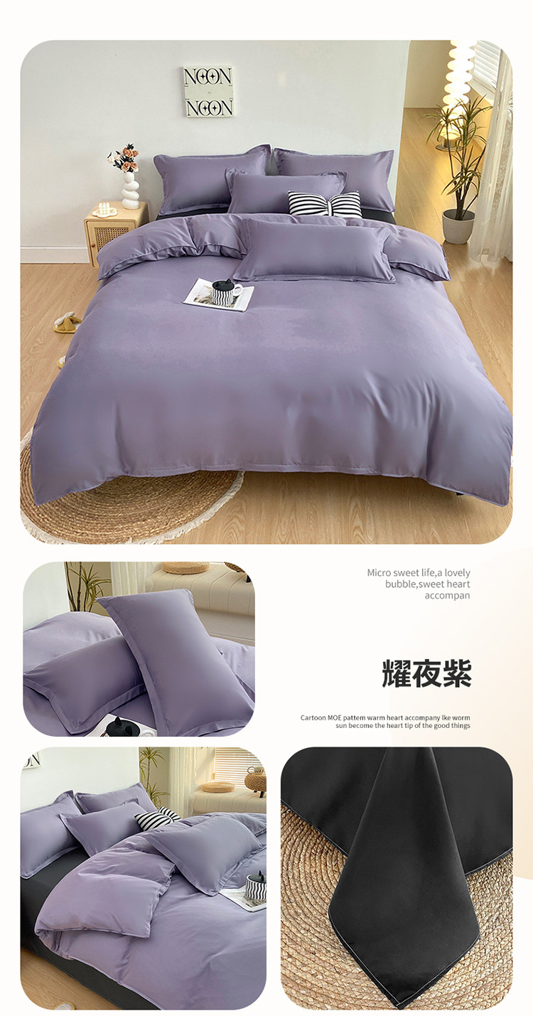 当前位置: 91家纺网 > 商品网购 > 床品套件 > 四件套 > 全棉普通四件套 > 楠沐 2025年新款纯色双拼水洗棉柔感四件套 耀夜紫
