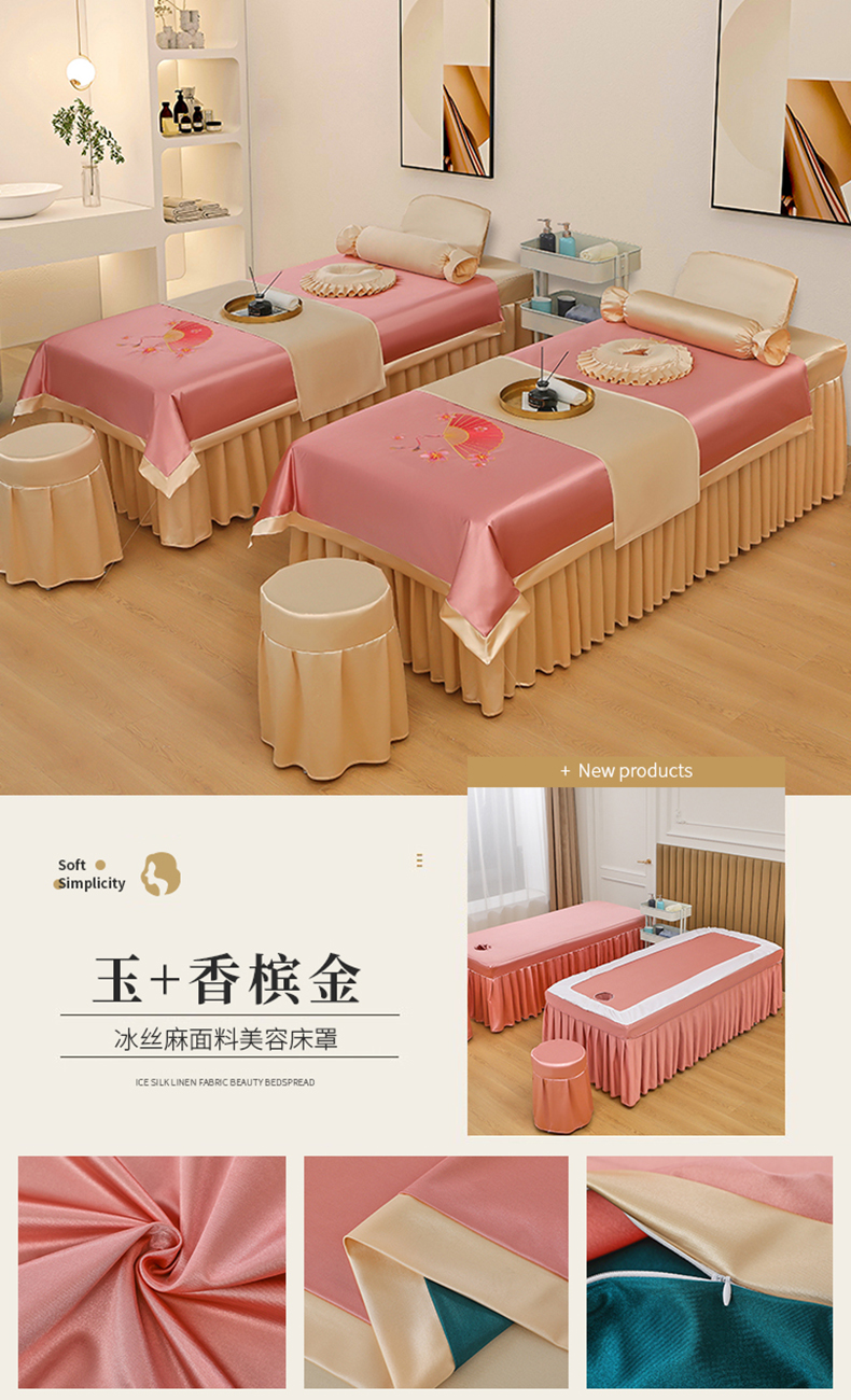 不打烊 2023新款冰丝美容床罩系列套件—扇子款(此款控价188) 扇子款玉+香槟金 被套玉色
