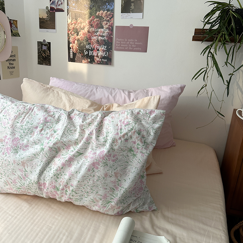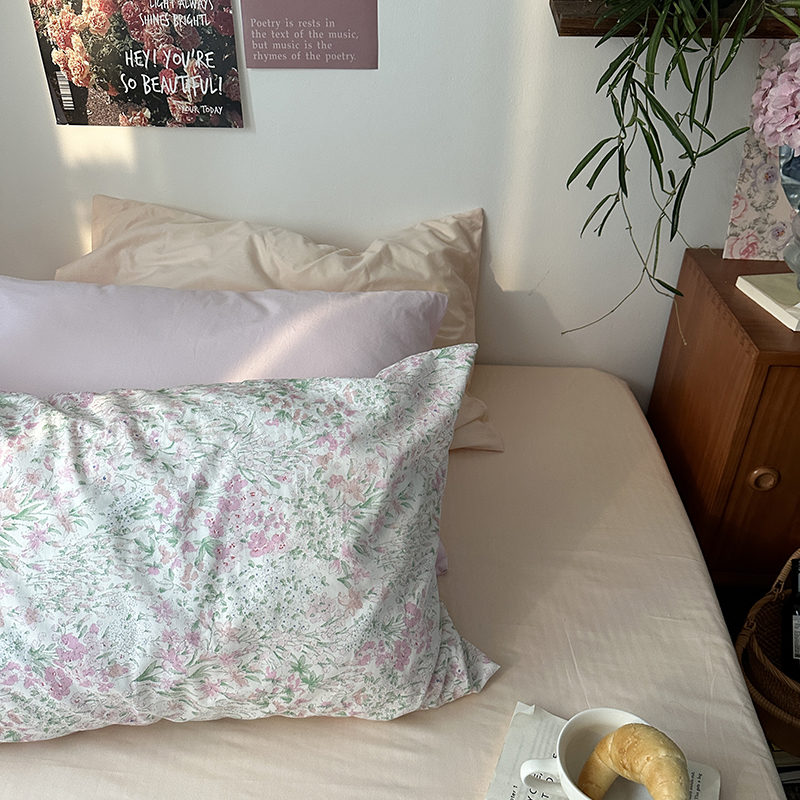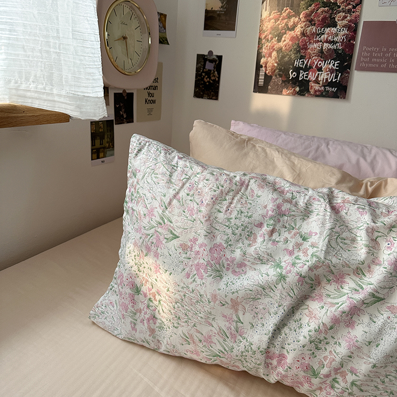 恋恋三季 2024新款40支13372轻法式小清新田园全棉印花单枕套-春日信(风格一) 胭脂玉