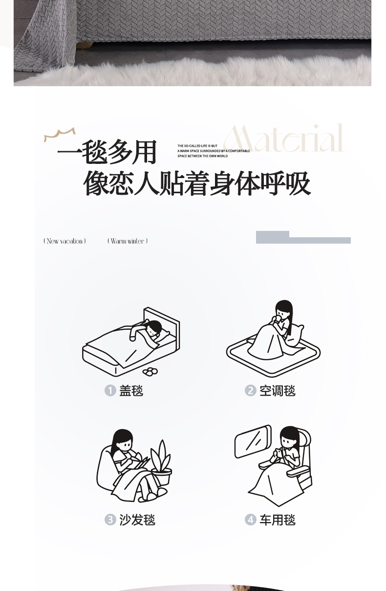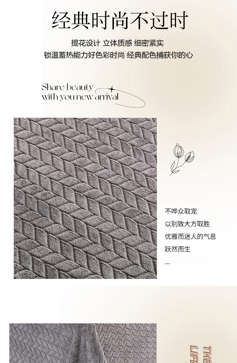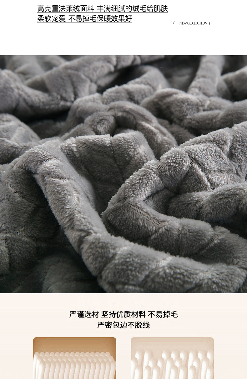 (总)新丽佳家纺 2023新款金龟绒法莱绒立体提花毛毯休闲毯办公小毯子,豆沙色,草绿,卡其,蓝灰,米白,柠檬黄,深灰,香芋紫