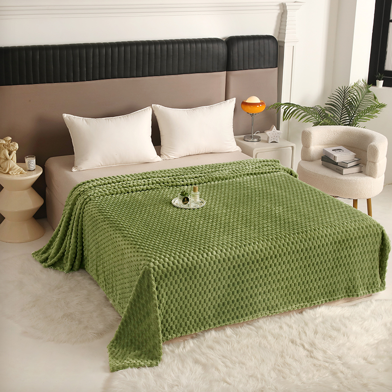 新丽佳家纺 2023新款法莱绒立体提花毛毯休闲毯办公午睡毯小毯子 草绿
