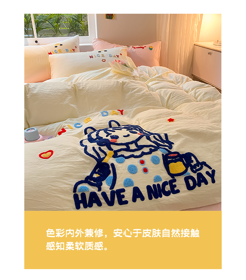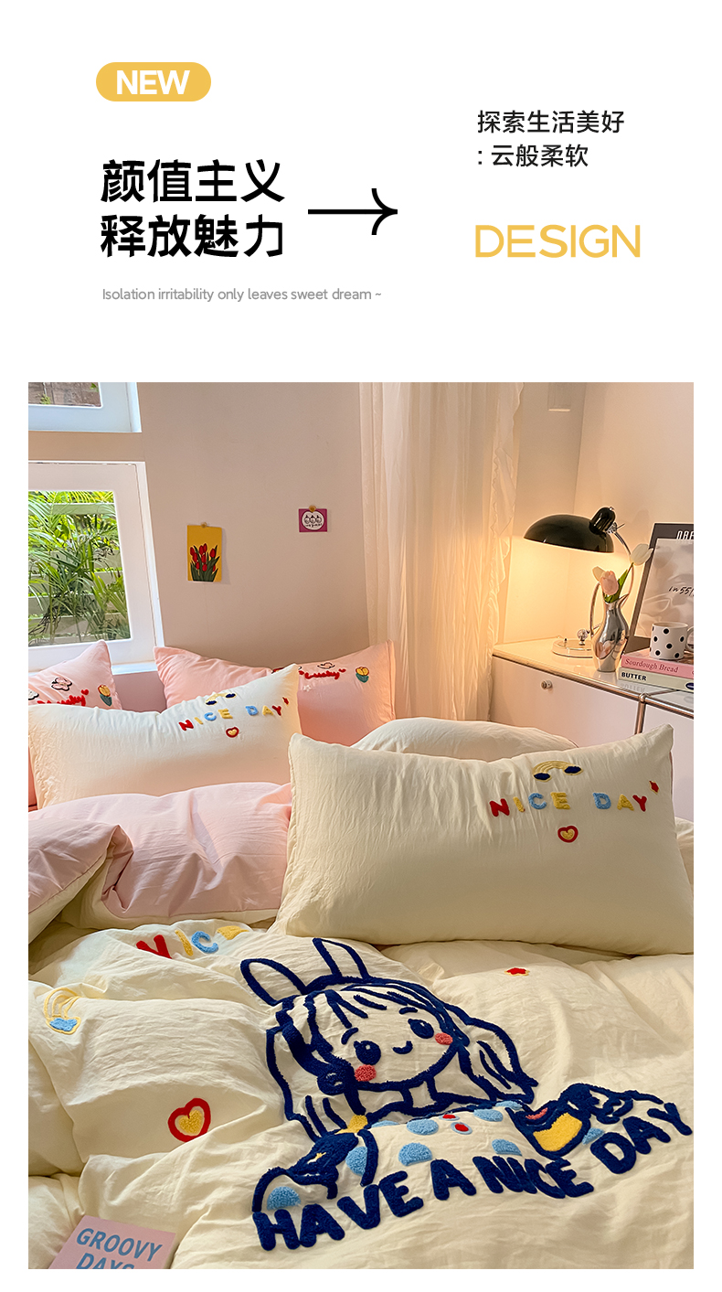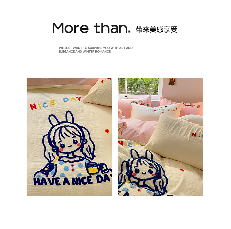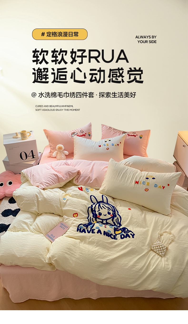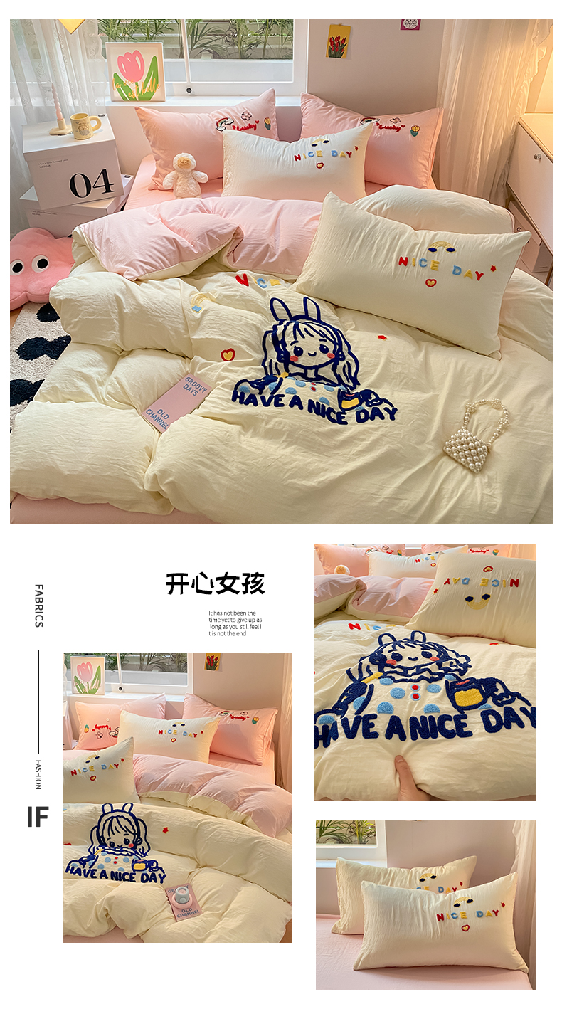 当前位置: 91家纺网 > 商品网购 > 床品套件 > 四件套 > 毛巾绣四件套 > 优承佳生活馆 2024新款ins风毛巾绣超柔亲肤云朵m四件套 开心女孩