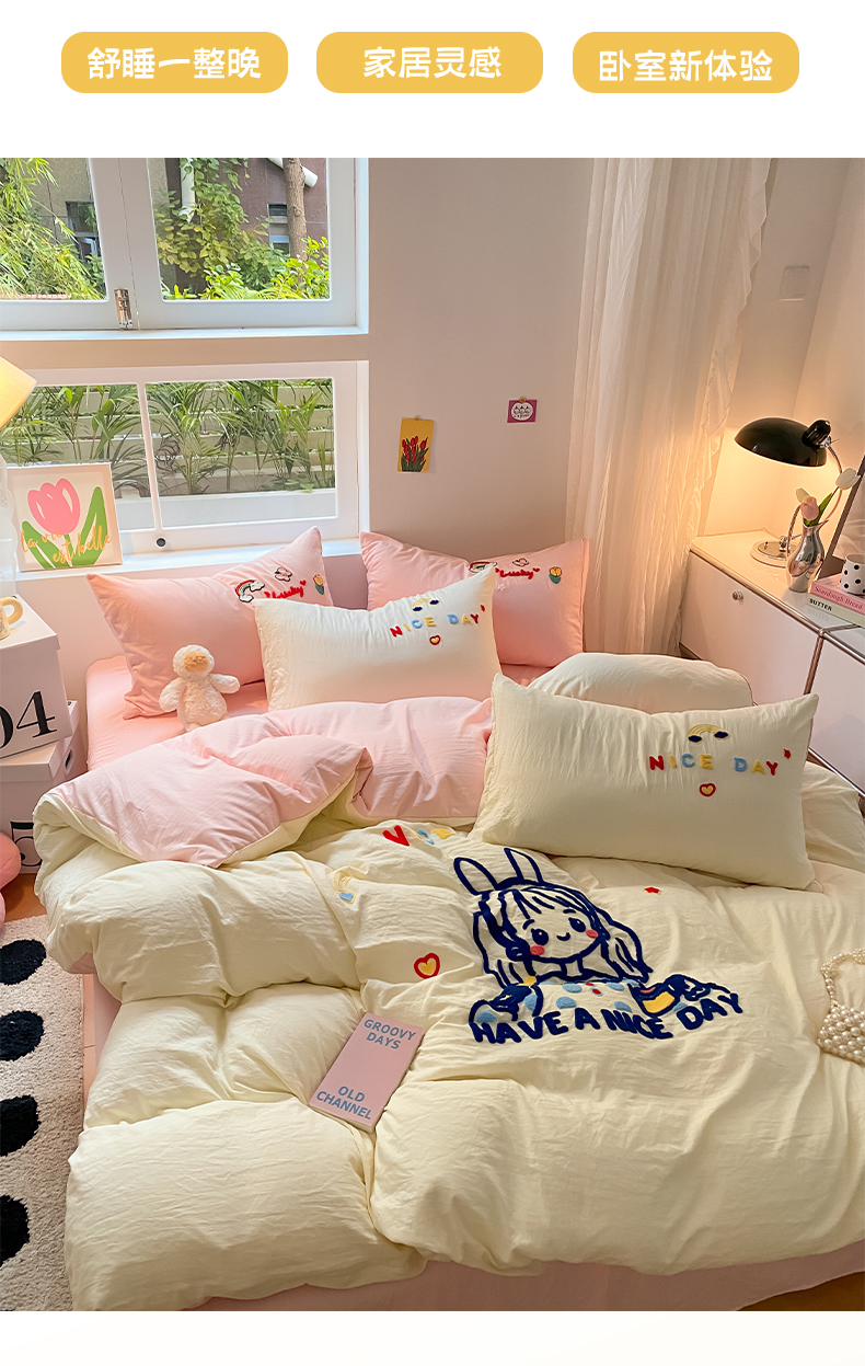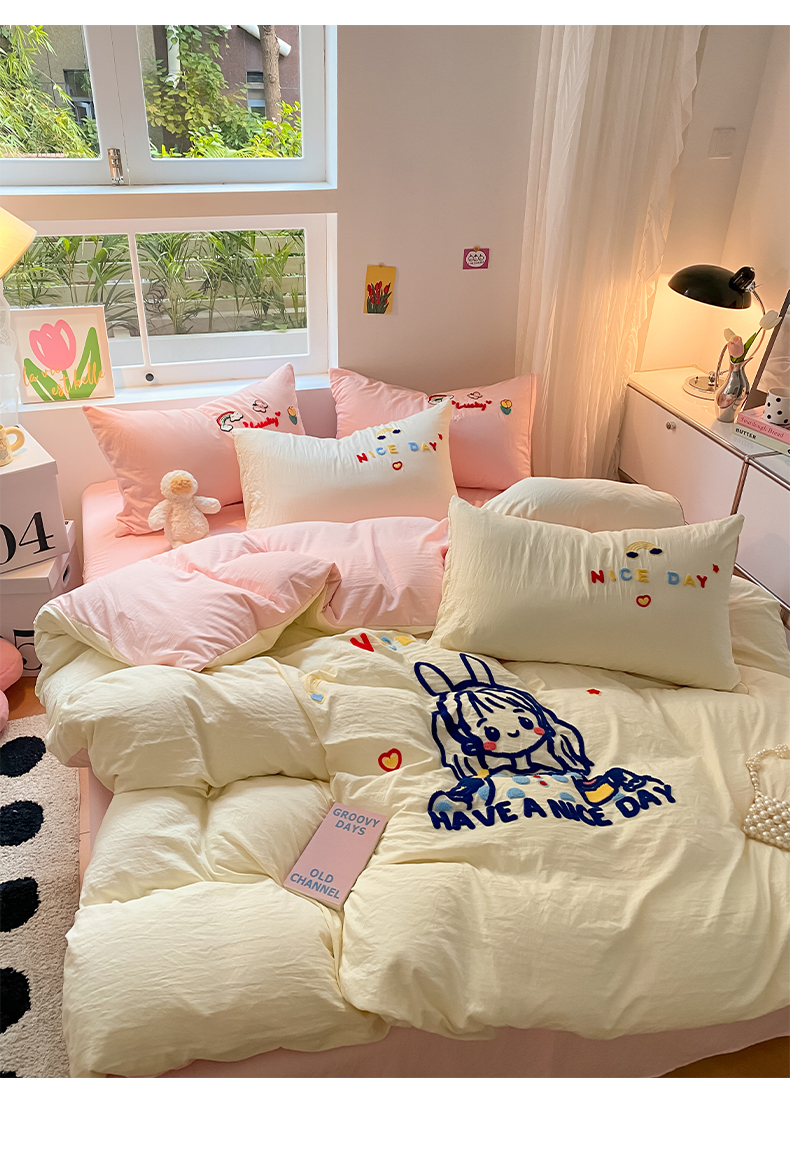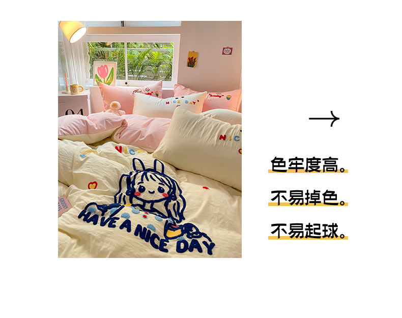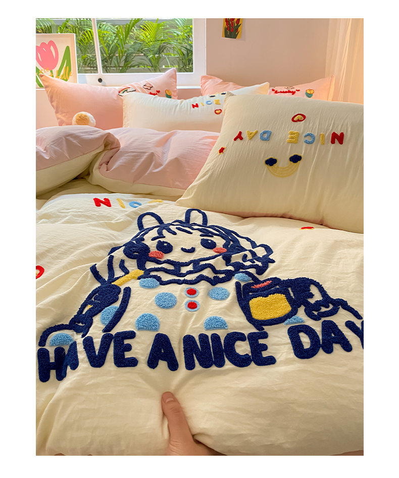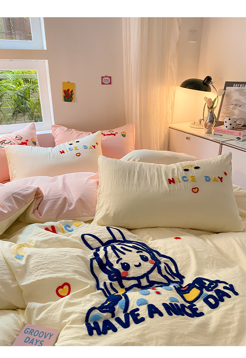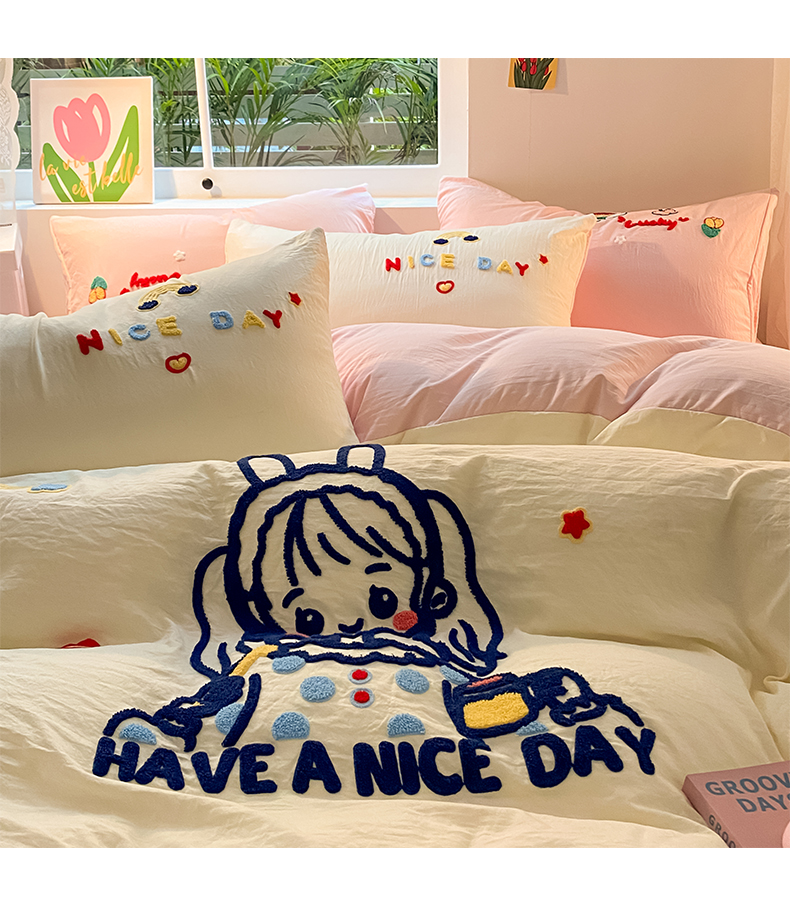 当前位置: 91家纺网 > 商品网购 > 床品套件 > 四件套 > 毛巾绣四件套 > 优承佳生活馆 2024新款ins风毛巾绣超柔亲肤云朵m四件套 开心女孩