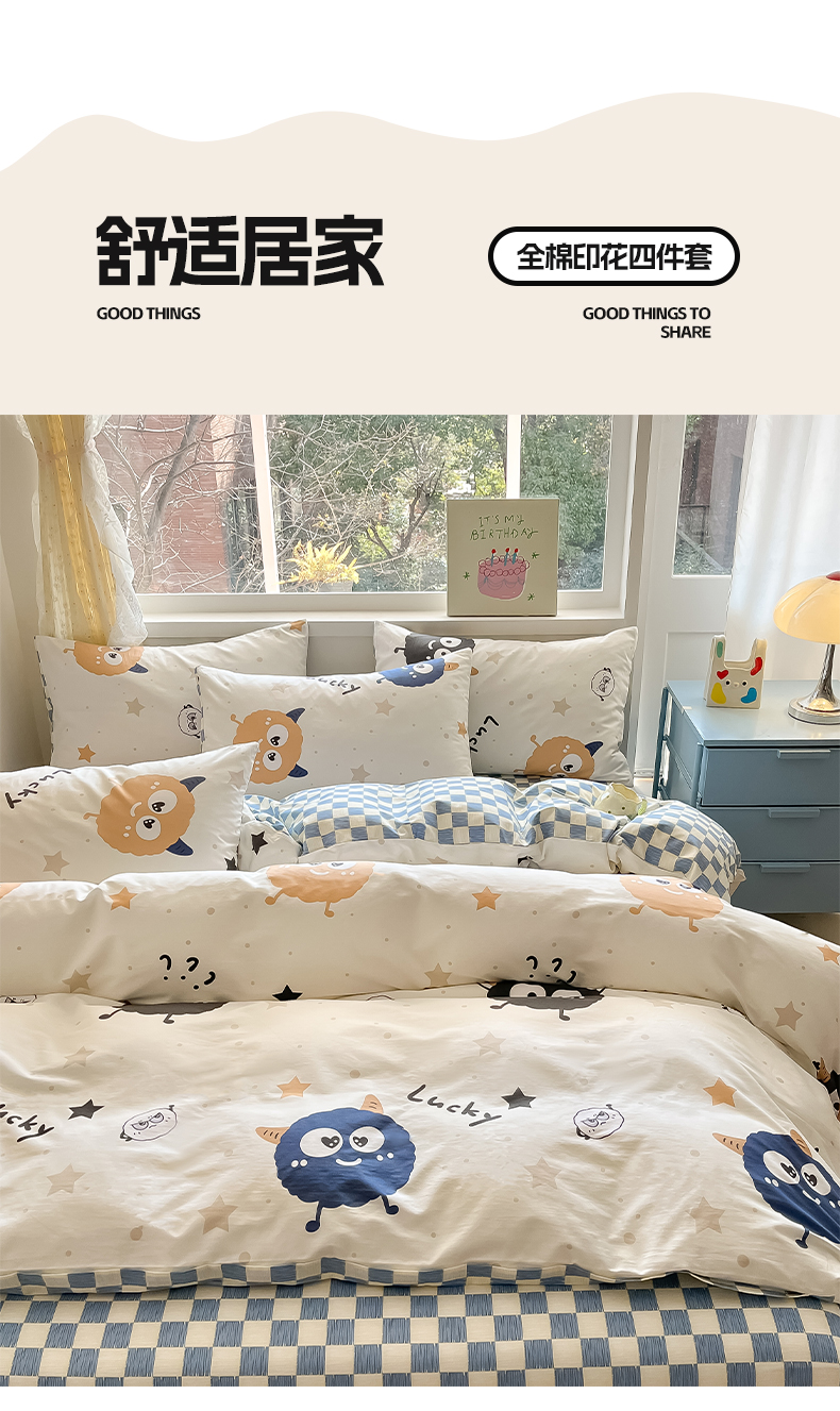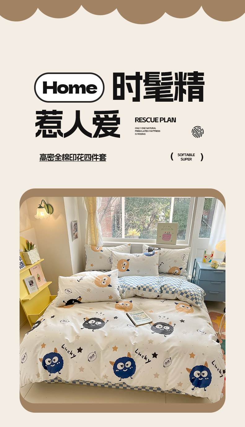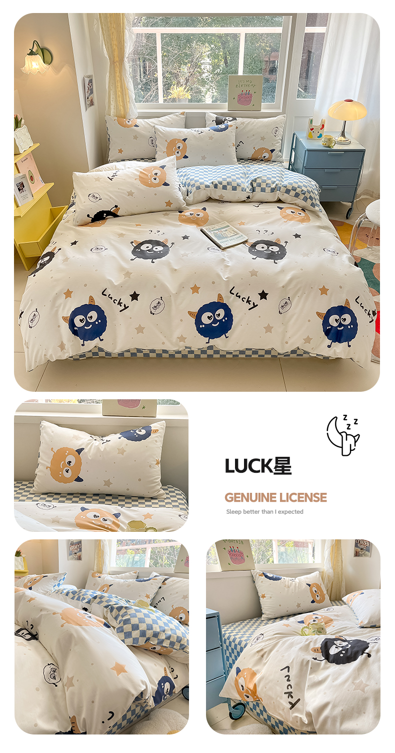 雅居纺 2024新款高密全棉13070印花四件套 LUCK星