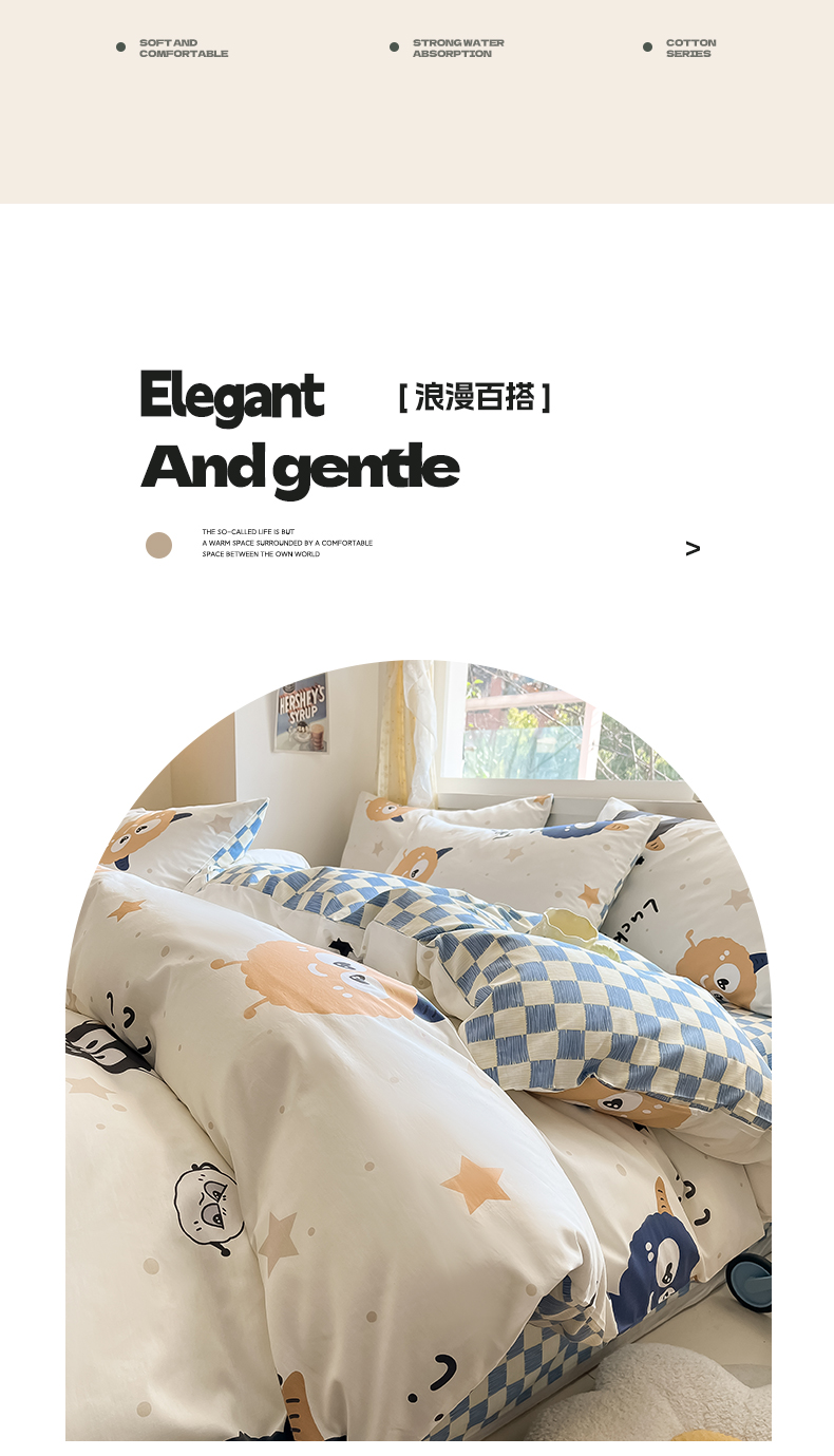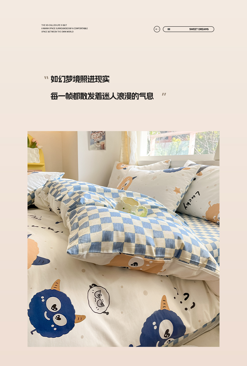 (总)雅居纺家纺 2022新款13070全棉印花四件套,草莓蝴蝶结,俄罗斯方块,黑白蝴蝶结,很嗨兔,可爱小兔,快乐花海,牛奶纹,胖胖鸭,棋盘格,日月争辉,西部恐龙,小情调,小桃桃