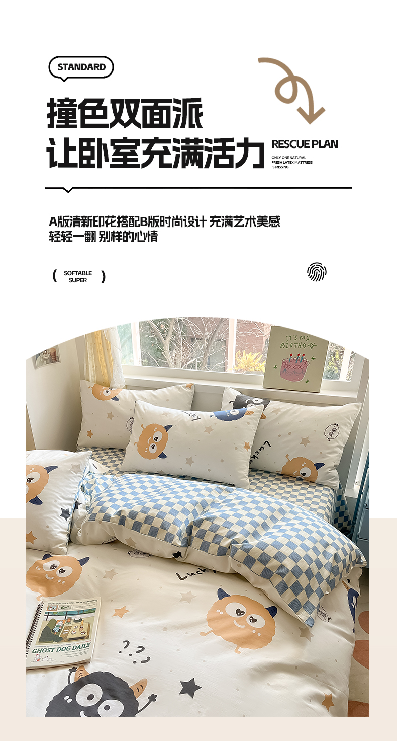 商品名称:雅居纺 2024新款高密全棉13070印花四件套 LUCK星