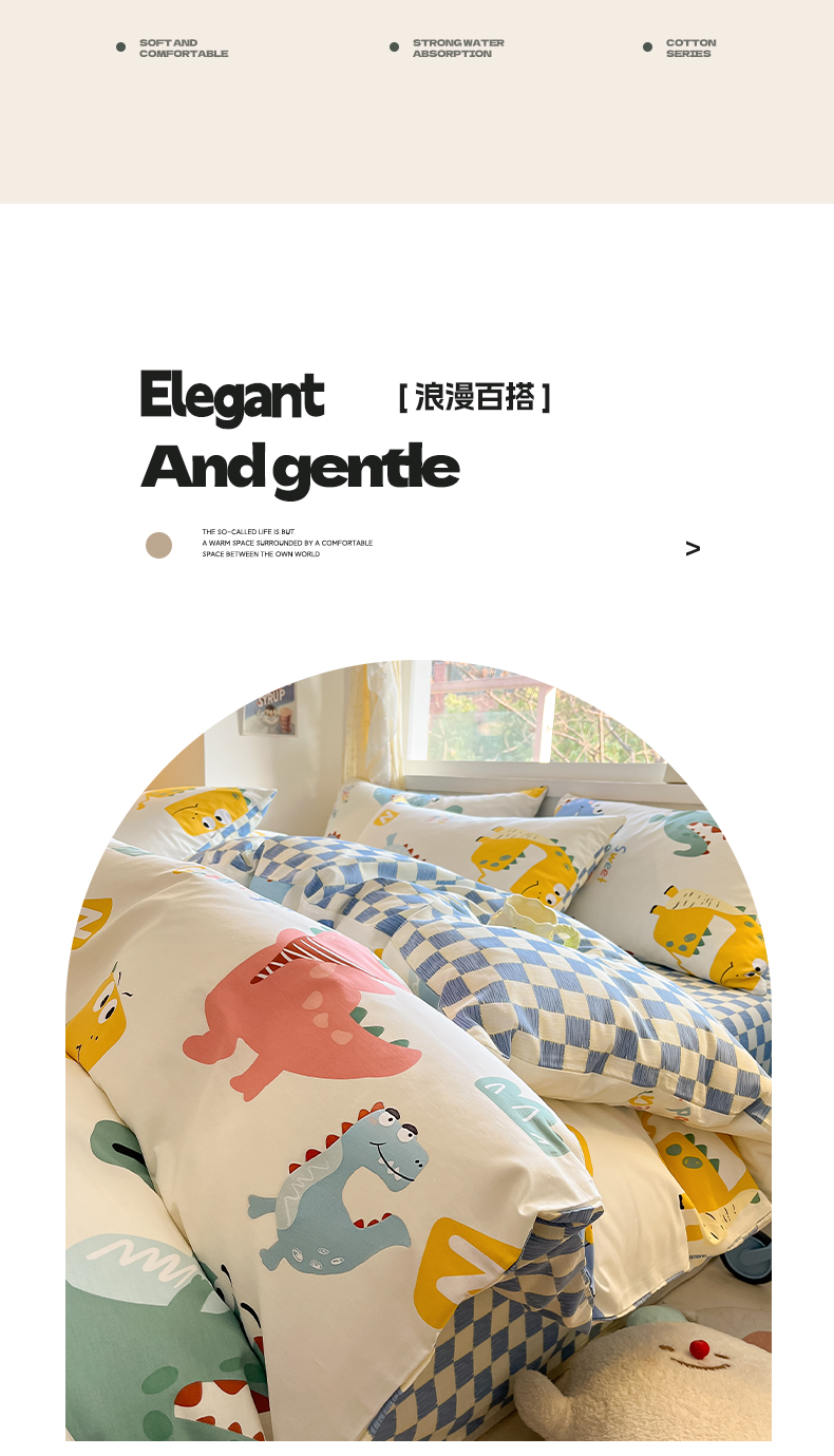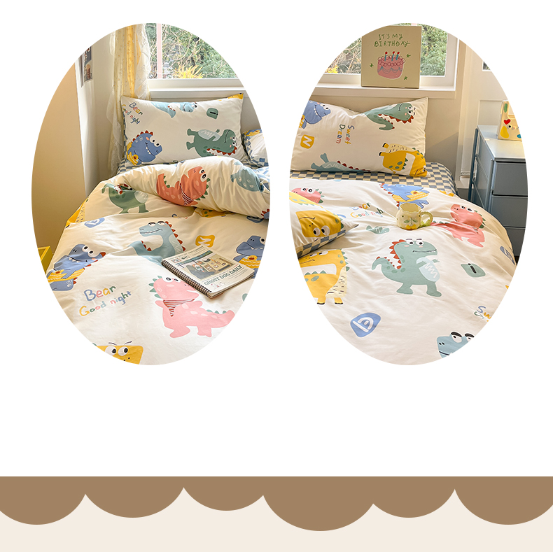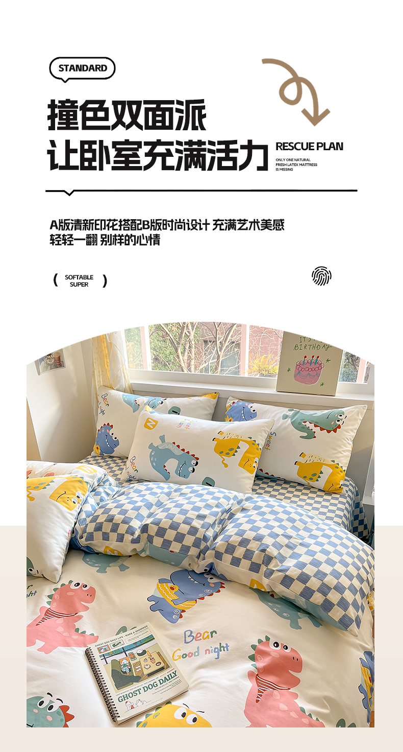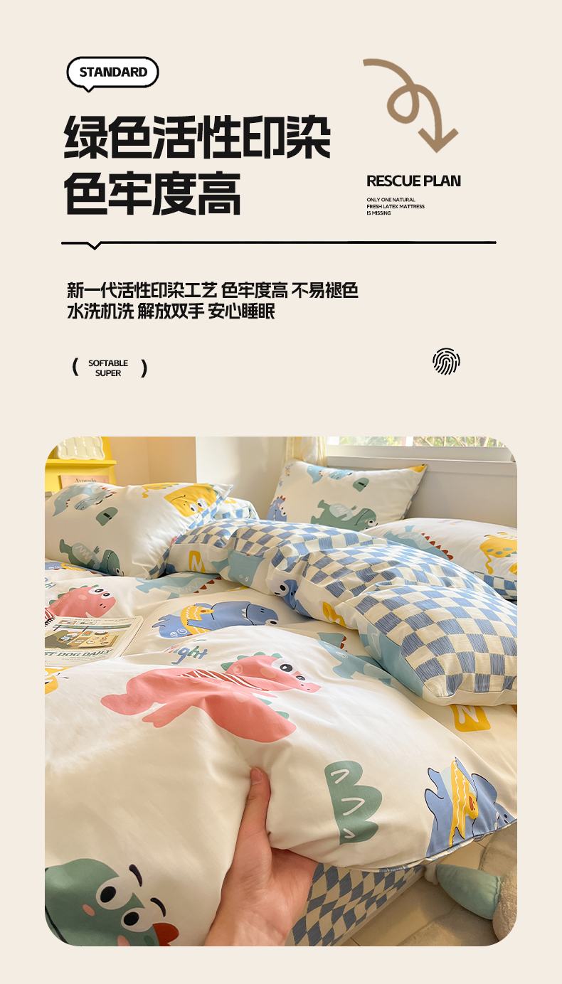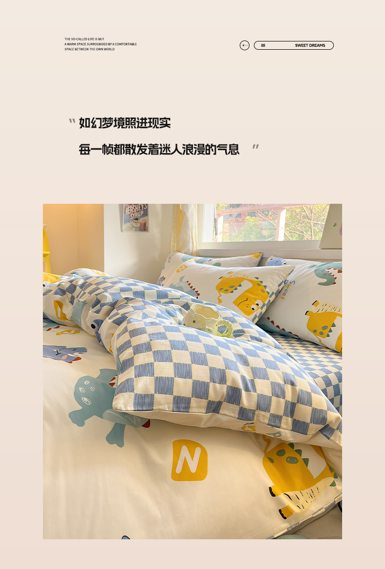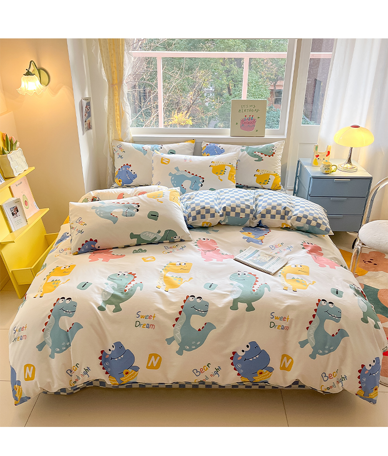 商品名称:雅居纺 2024新款高密全棉13070印花四件套 恐龙家族