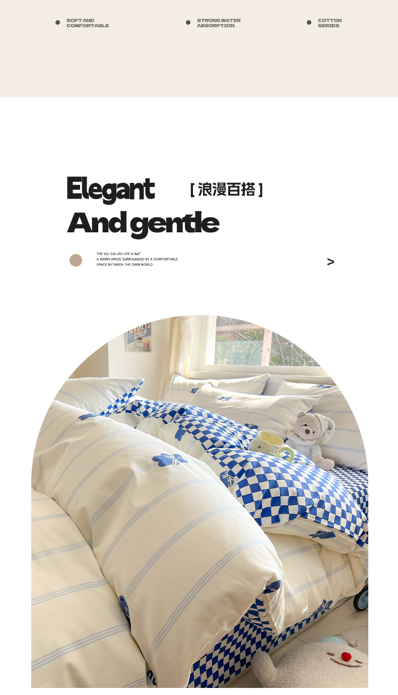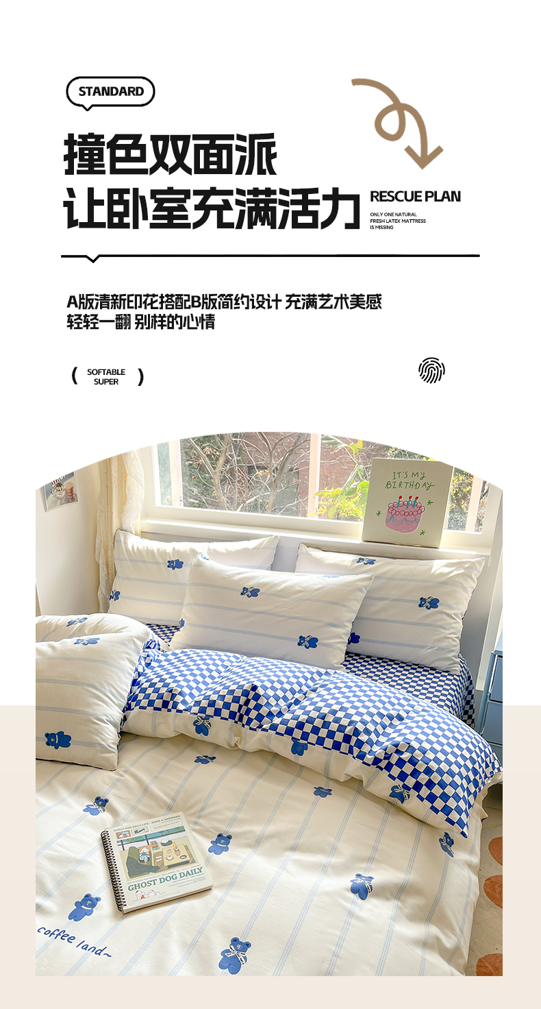 (总)雅居纺家纺 2026新款全棉小清新印花四件套,HI小狗,暴富,草莓蓝花,粉色熊熊,红红火火,简笔画小兔,蓝条花朵兔,绿色小兔,森林乐园,绅士快乐狗,贪睡猫猫,贪玩家族,贪玩小兔兔,祥瑞,小黑猫咪,幸福花朵,幸福兔-蓝,熊熊小汽车,紫色千鸟格