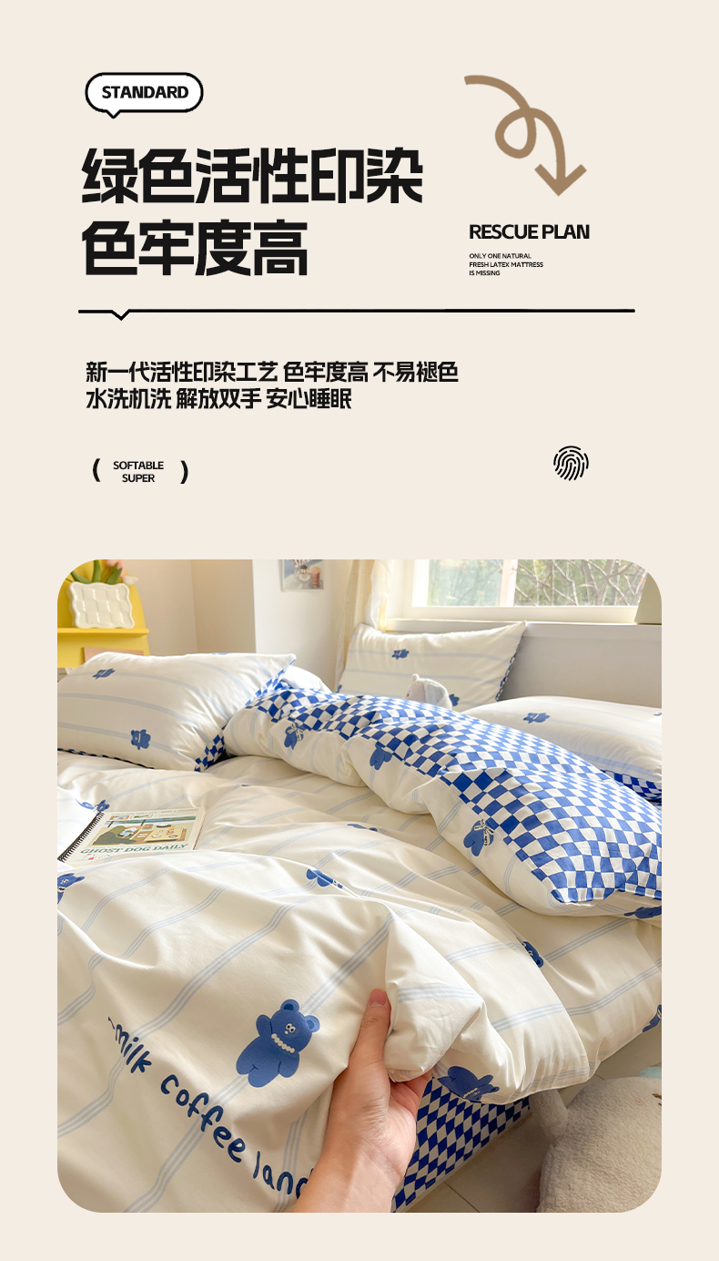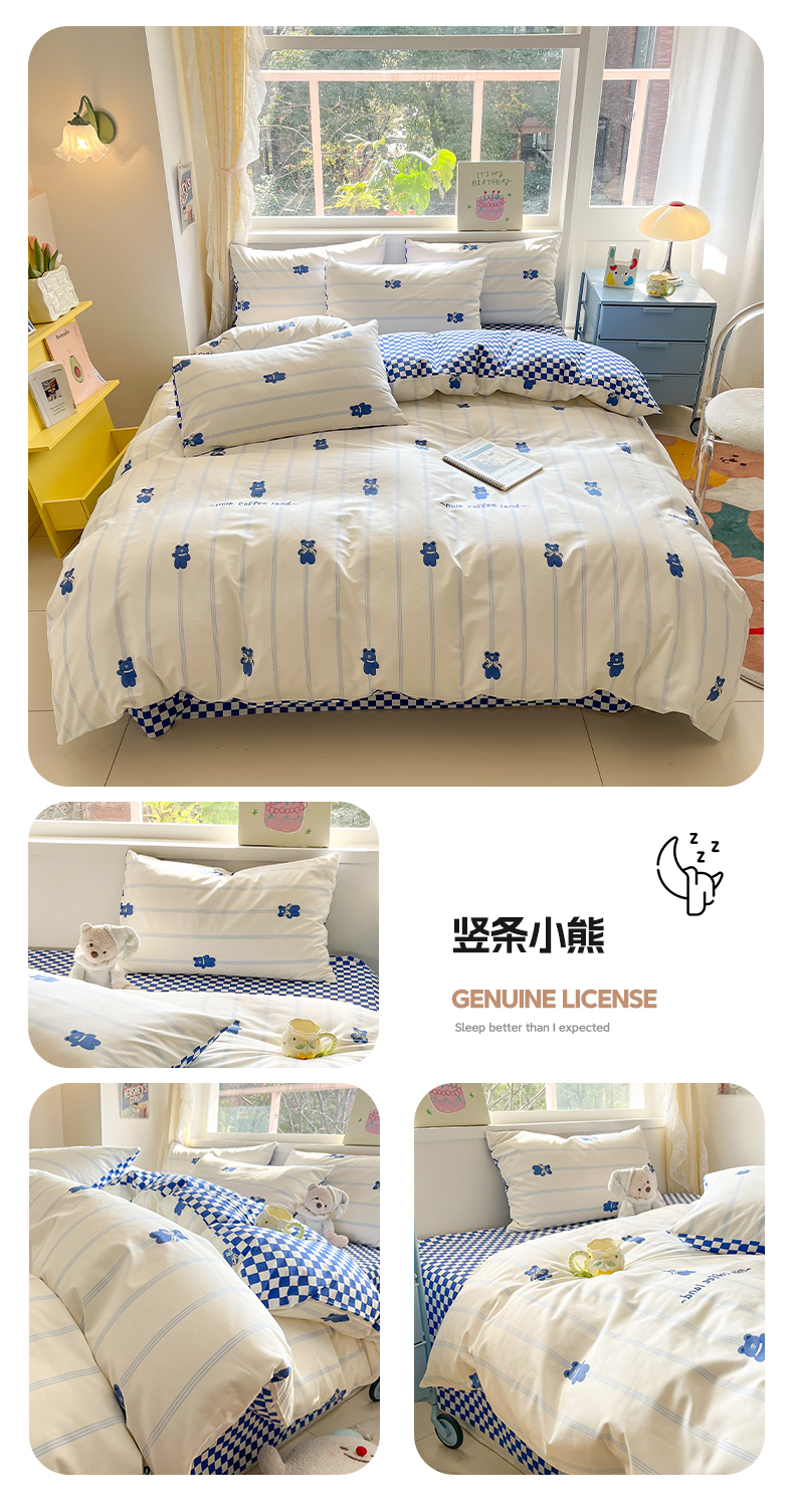 商品名称:雅居纺 2024新款高密全棉13070印花四件套 竖条小熊