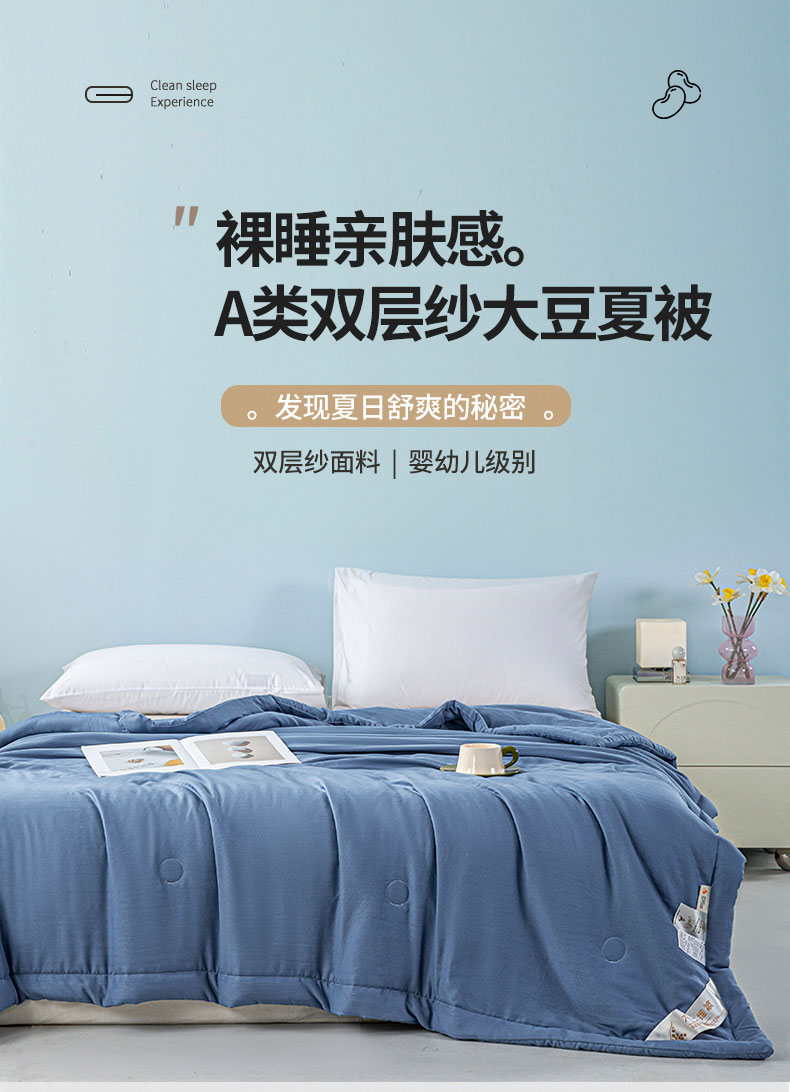 商品名称:森林人 2024新款A类双层纱大豆纤维夏凉被 双层纱-宾利蓝